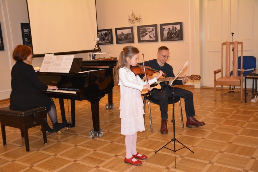 В отчетном концерте приняли участие ученики школы: Зося Олевская — исполнила «Этюд» Натальи Баклановой, «Петушок» Михаила Магиденко, «Баю-баюшки, баю» Николая Метлова и русскую народную песню «Как под горкой»; Бибисара Буторина – сыграла композицию «Весельчак» Александра Гречанинова, отрывок из оперы «Волшебный стрелок» Карла Вебера, первую часть концерта «Соль мажор» Оскара Ридинга.