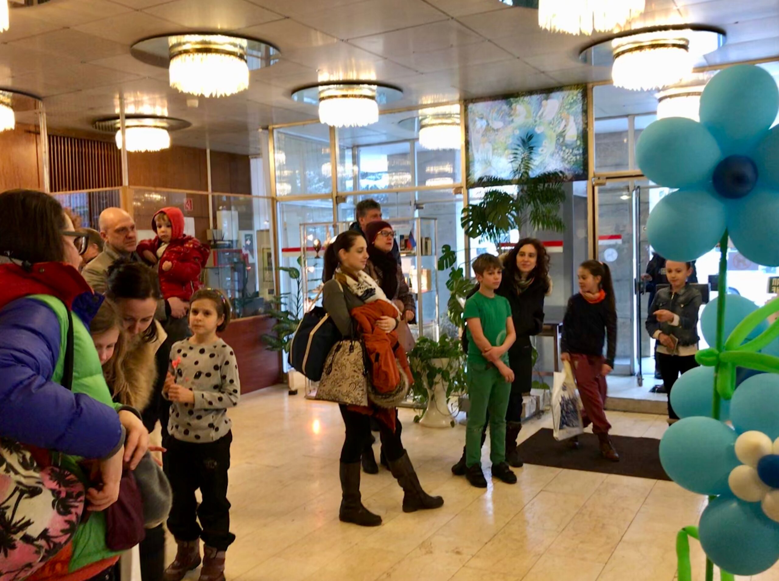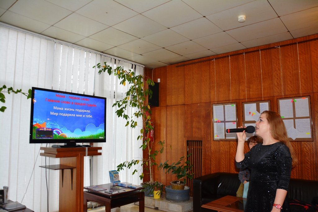 Перед началом церемонии  в фойе Российского центра участники конкурса и их родители посмотрели видео с уроков русского языка и литературы, а Наталья Мразова исполнила несколько песенок про маму.