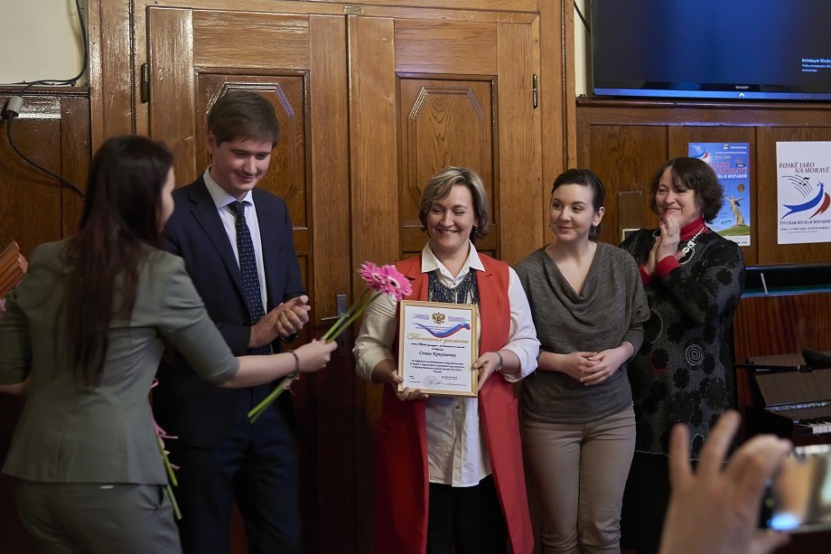 Zplnomocněný vedoucí Zastupitelství Rossotrudničestva v ČR A. Končakov poblahopřál organizátorům a účastníkům k jubileu. Předal ocenění aktivním účastníkům Ruské kulturně-osvětové společnosti na Moravě za plodnou spolupráci a propagaci ruské kultury v ČR.