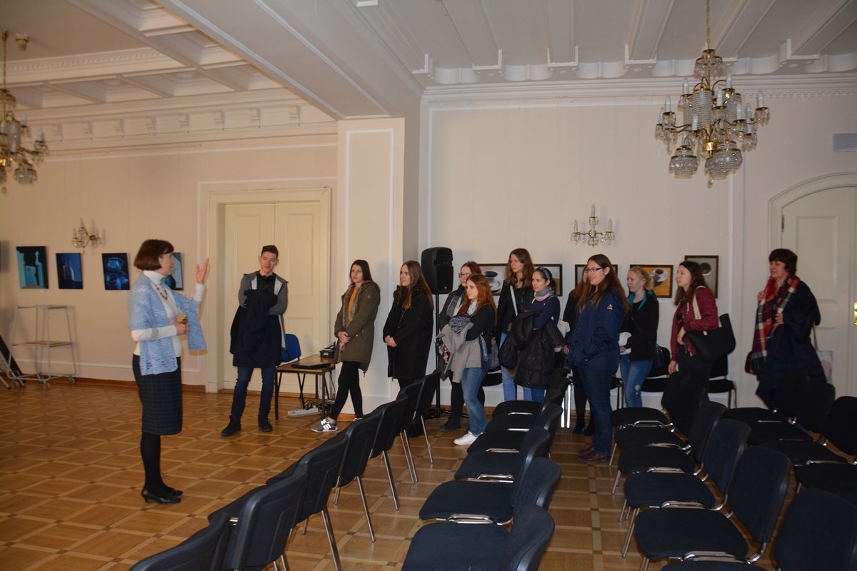 Затем гости отправились в библиотеку, осмотрели ее фонды и узнали, как стать читателями библиотеки. В Хрустальном зале познакомились с выставкой работ русских художников «Фрагменты».
