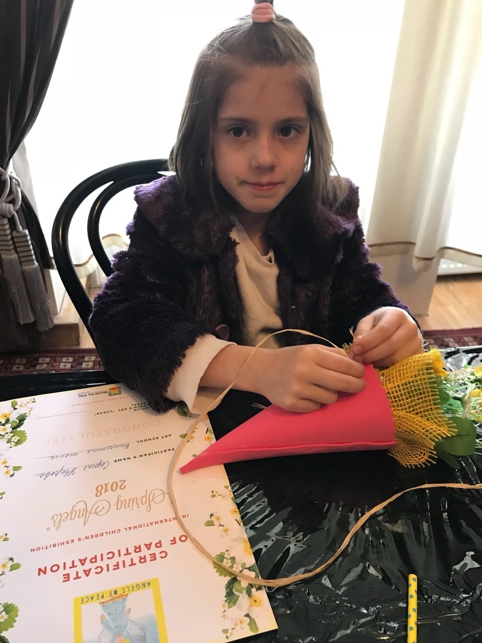 Экспозиция в Карловых Варах посвящена весенним ангелам — на выставке представлены около 100 работ, 30 из них нарисовали ученики Воскресной школы и Русской гимназии города. Работы выполнены в разных жанрах гуашью, акварелью, пастелью, цветными карандашами и восковыми мелками, есть даже одна глиняная скульптура ангела. «Чистая энергетика детских работ наполняет зрителей положительными эмоциями, дает надежду на светлое будущее», — отметила Ксения Коваль.
