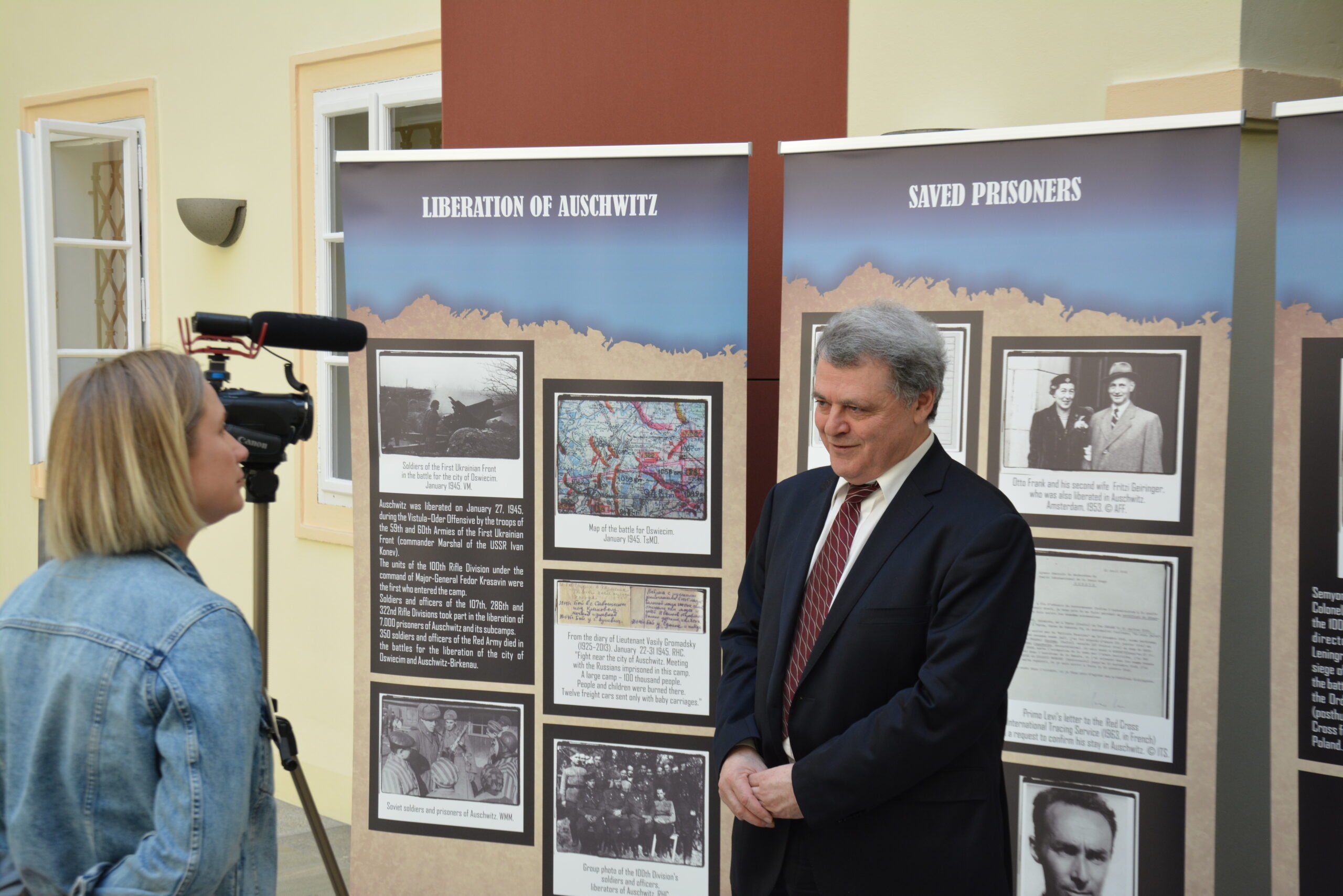 Ve svém projevu mimořádný a zplnomocněný velvyslanec RF v ČR A. Zmejevskij podtrhl důležitost odporu vůči pokusům překroutit historii Druhé světové války, jak se to děje v některých evropských zemích. Na výstavě je soustředěna pozornost na spojení osvobození nacistických „továren smrti« Osvětimy a Terezína s hrdinstvím sovětských vojáků – osvoboditelů 1. ukrajinského frontu pod velením maršála Sovětského svazu I. S. Koněva, na jehož počest byl v Praze ustanoven památník.