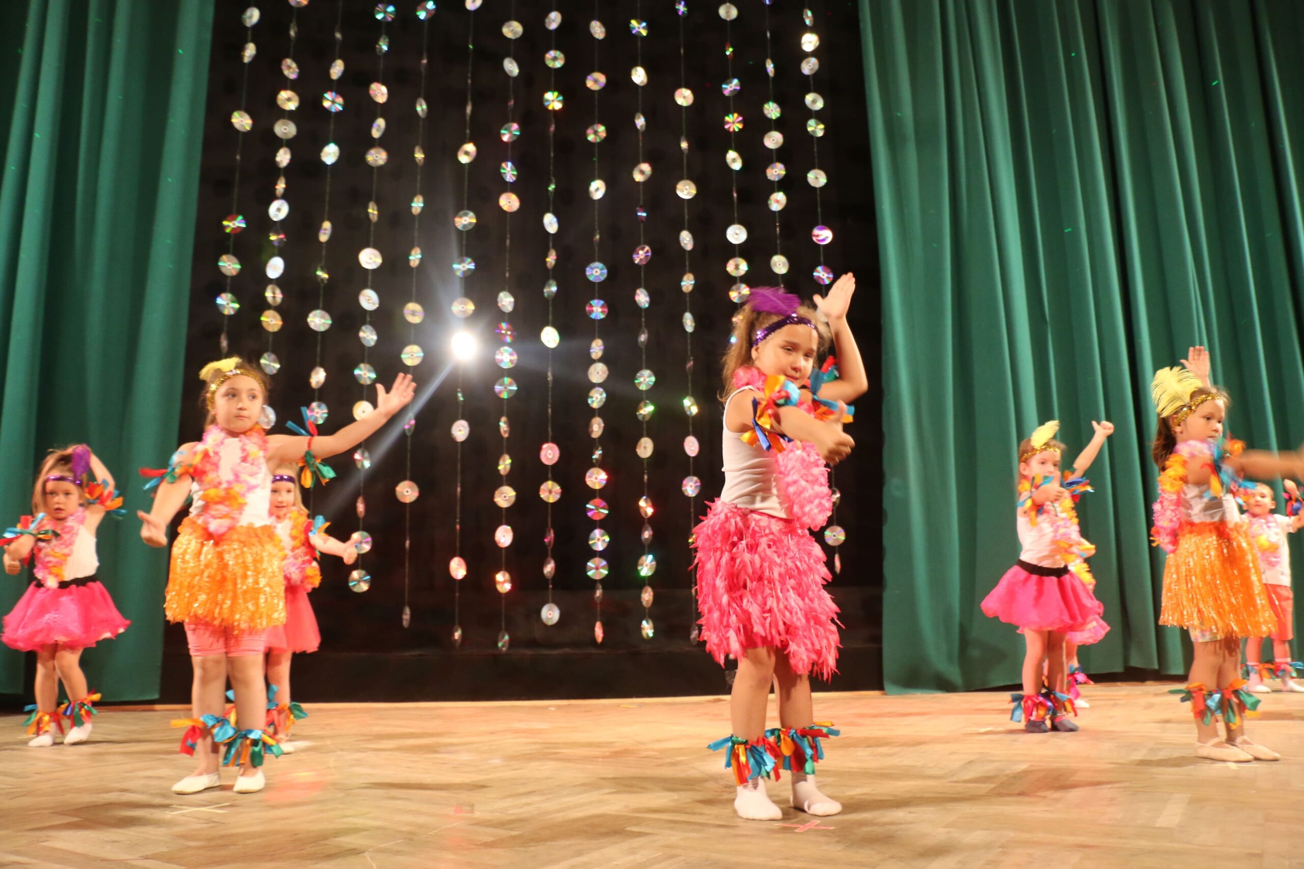 Вокальный ансамбль родителей под руководством педагога Натальи Мразовой исполнил всемирно известный хит группы «Beatles» «Уesterday». Младшая танцевальная группа выступила с задорным танцем «Чунга-чанга», а средняя порадовала зрителей эмоциональными «Уличными танцами». Закончился концерт совместным исполнением учащимися студии песни «Mama Maria».
