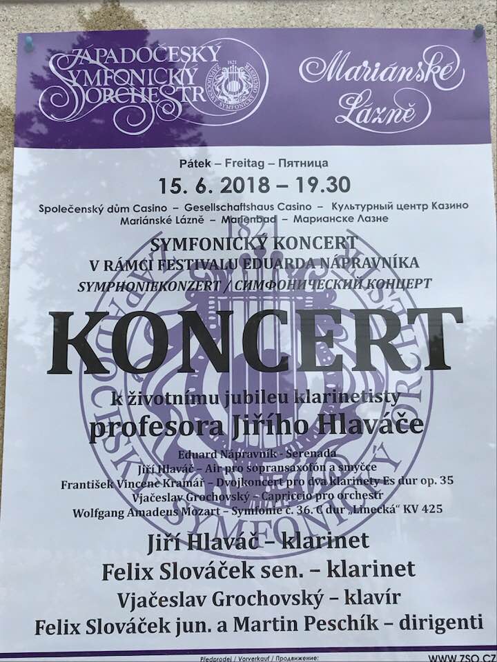 В концерте прозвучали произведения Эдуарда Направника, Франтишка Крамаржа-Кроммера, Вольфганга Амадея Моцарта, Йиржи Главача и Вячеслава Гроховского.