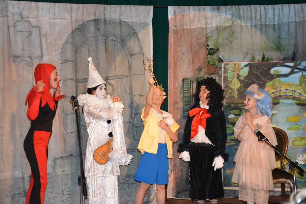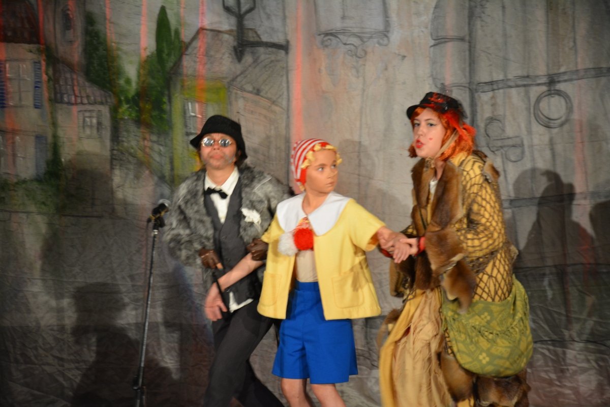 Спектакль поставлен по мотивам любимого несколькими поколениями зрителей фильма «Приключения Буратино» (1975г.), снятого режиссером Роланом Быковым. В 2016 году театр «Пиноккио» с большим успехом представил премьеру этого спектакля в РЦНК в Праге. В этом году перед зрителями играл обновленный состав юных актеров. Варвара Зайцева исполнила главную роль – Буратино, Стефания Главацкая сыграла Мальвину, Мартина Лацманова-Михаэлян — Пьеро Дмитрий Волошин – верного Артемона. Другие роли исполнили Сабина Мулаева (Арлекин), Влада Заграничик (Папа Карло), Яна Егерь (Карабас-Барабас), Фатима Эльдарушева (Дуремар), Алиса Ходусова (Лиса Алиса), Каролина Заграничик (Кот Базилио) и другие ребята. Художественный руководитель театра Наталья Ходусова также сыграла в спектакле, она исполнила роль Черепахи Тортиллы.