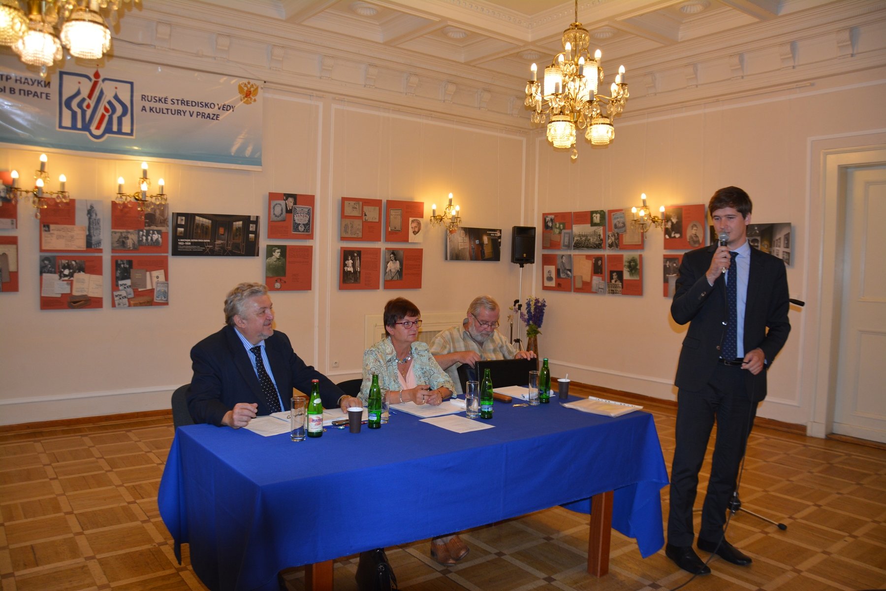 Затем исполняющий обязанности руководителя представительства Россотрудничества в Чехии Андрей Кончаков отметил, что Российский центр науки и культуры в Праге открыт для проектов общества и готов оказывать им всестороннюю информационную и организационную поддержку. Поздравил председателя Чешской ассоциации русистов Иржи Клапку с получением заслуженной награды — государственной награды Российской Федерации медали имени А.С. Пушкина.