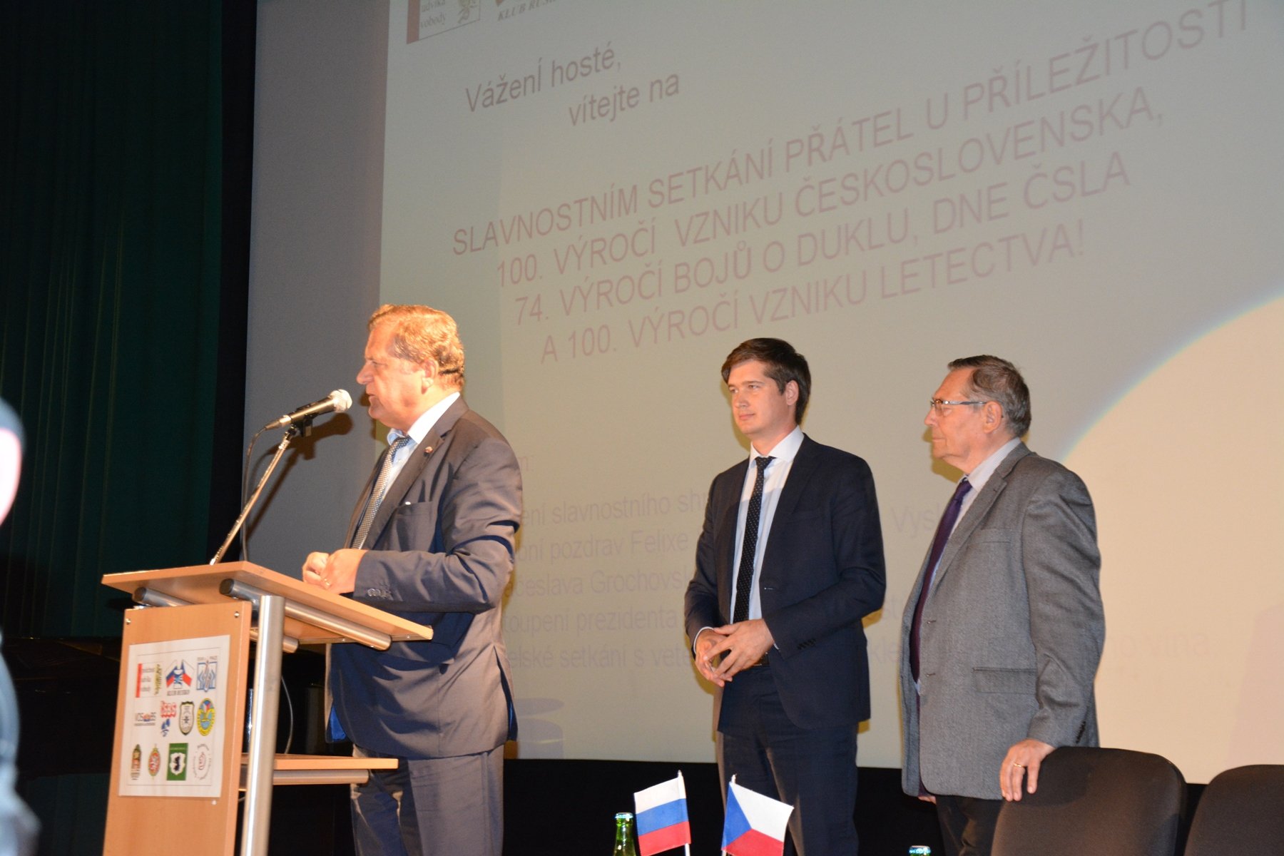 Президент «Клуба Россия» Зденек Збытек основную часть своего выступления посвятил урокам истории. Отметил, что многие чешские политики и СМИ занимаются искажением истории и «промыванием мозгов» и совсем не вспоминают такие важные события, как Карпатско-Дуклинская операция. Напомнил, что в боях за освобождение Чехословакии от фашистов пали 130 тысяч советских солдат и 32 тысячи чешских и словацких воинов. Подчеркнул важность и необходимость противодействия искажению исторической правды и попыткам замолчать и переписать славную историю двусторонних отношений. Особо отметил, что после долгого перерыва сегодня представителей чешских ветеранских организаций принял заместитель начальника Генерального штаба чешской армии.