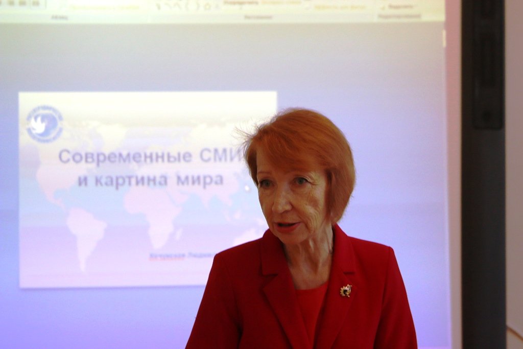 С сообщением по теме «Современные масс-медиа: мировые тренды и факторы трансформации» выступила доцент кафедры массовых коммуникаций филологического факультета РУДН, кандидат филологических наук, член Союза журналистов России Людмила Хочунская.