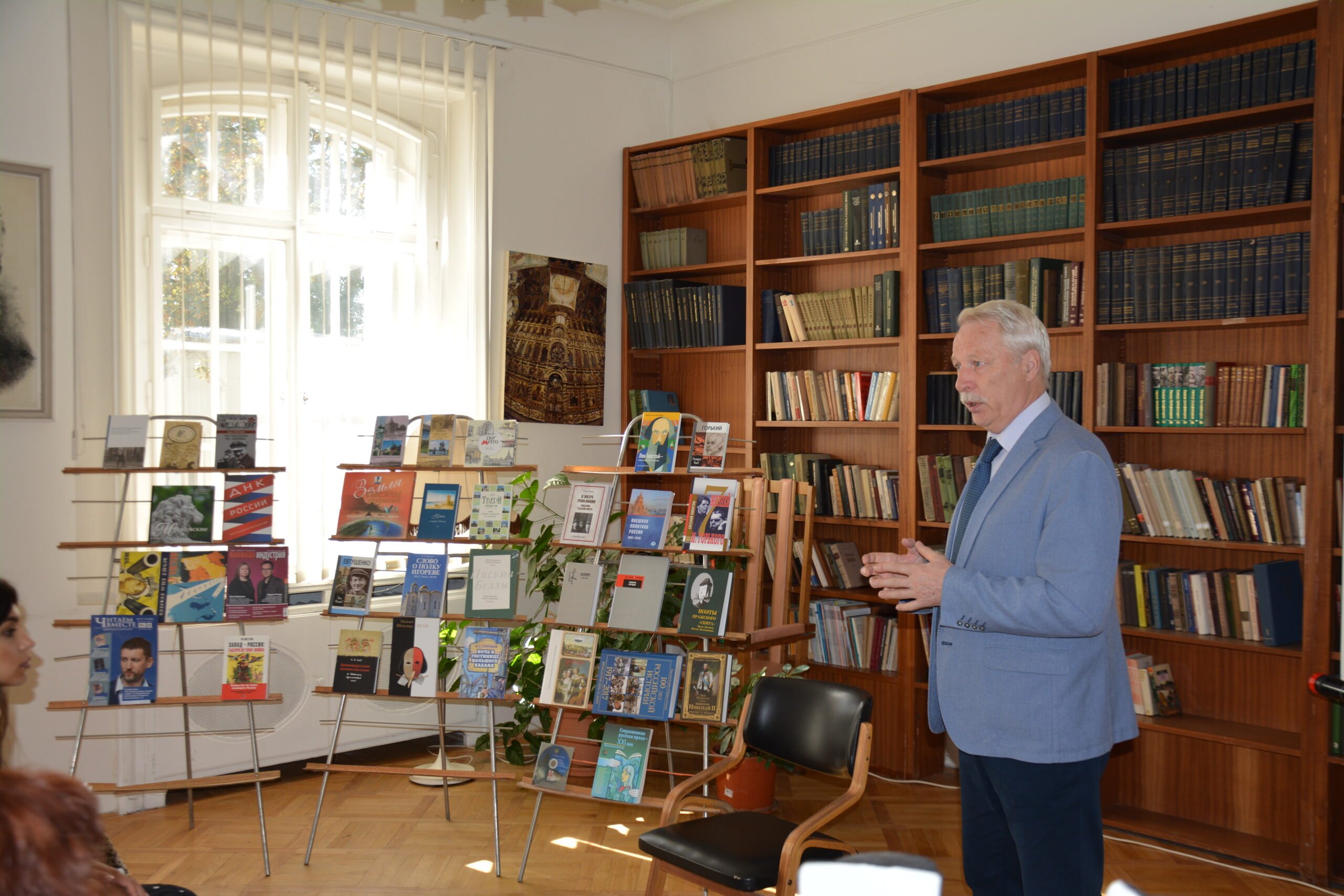 На выставке-презентации была представлена книжная продукция московских и региональных издательств. Присутствующие могли с ней ознакомиться, а Олег Филимонов в ходе презентации прокомментировал наиболее интересные из представленных книг.