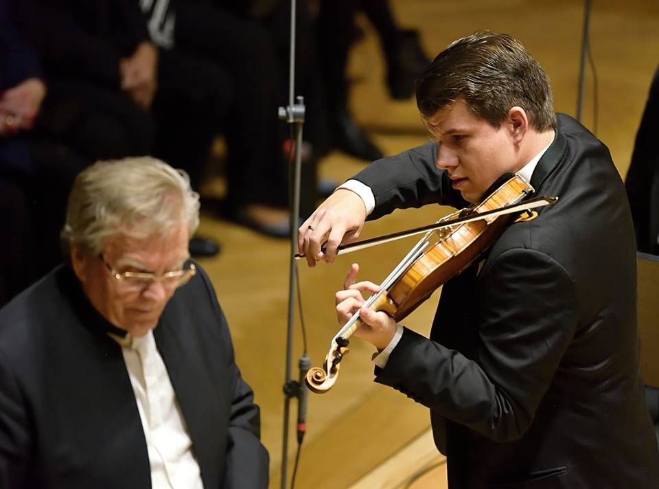 Сольную партию скрипки в «Концерте для скрипки с оркестром ре мажор» виртуозно исполнил победитель международного конкурса скрипачей имени Фрица Крейслера в Вене в 2014 году и солист Симфонического оркестра Чешского радио Ян Мрачек.