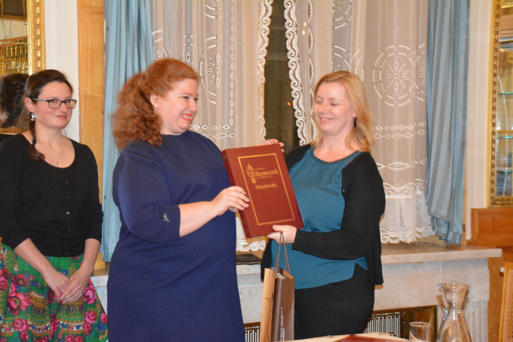 В завершение творческой встречи кандидат искусствоведения, музыковед, заведующая отделом рукописных и печатных источников Государственного мемориального музыкального музея-заповедника П.И. Чайковского Ада Айнбиндер передала представителю Пражского симфонического оркестра два тома собраний сочинений реконструкции сохранившихся фрагментов оперы «Ундина» и музыки к гимну Фридриха Шиллера «К радости» Петра Ильича Чайковского..