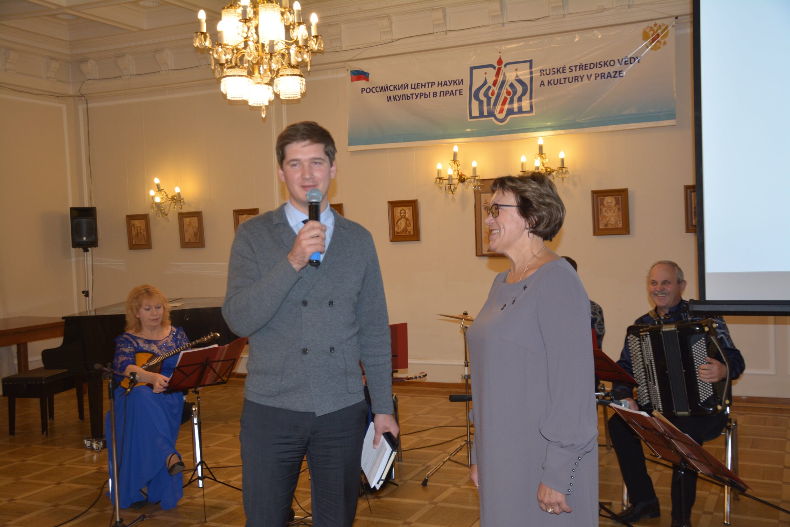 Директор Тверского областного Дома народного творчества Елена Марина передала благодарственное письмо в адрес РЦНК в Праге и выразила признательность за предоставленную коллективу «Калина-ART» возможность выступить в столице Чехии. Она рассказала о деятельности Тверского областного Дома народного творчества и представила коллектив музыкантов «Калина-ART» — руководителя коллектива Александра Некрасова (баян), Ирину Гефеле (домра-альт), Татьяну Шкваркину (домра-альт), Александра Ипполитова (ударная установка), Андрея Кудрявцева (контрабас-балалайка) и его солистку, лауреата международных и всероссийских конкурсов Ксению Поздневу.