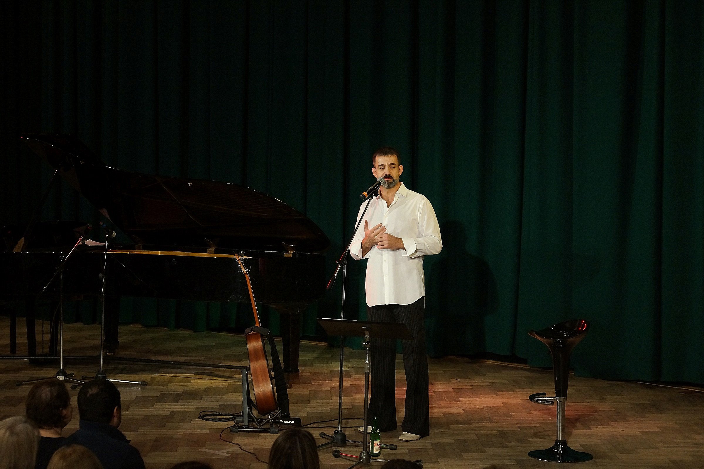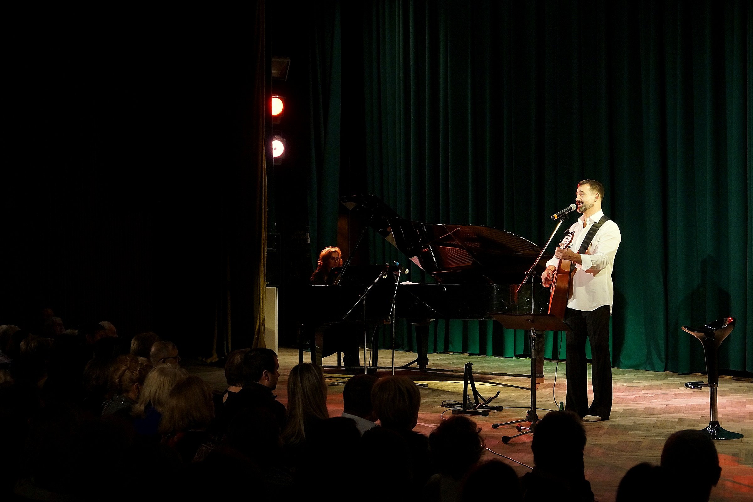 В Прагу Дмитрий Певцов прилетел всего на несколько часов и выступал впервые. Невероятная популярность актера обеспечила аншлаг в Большом зале РЦНК в Праге. Российский артист вместе с пианисткой Анной Комаровой подготовили для пражских зрителей программу «Баллада о Высоцком», в которой прозвучали песни и стихи Владимира Семеновича Высоцкого «Беду», «Дом хрустальный», «Кони привередливые» и многие другие.