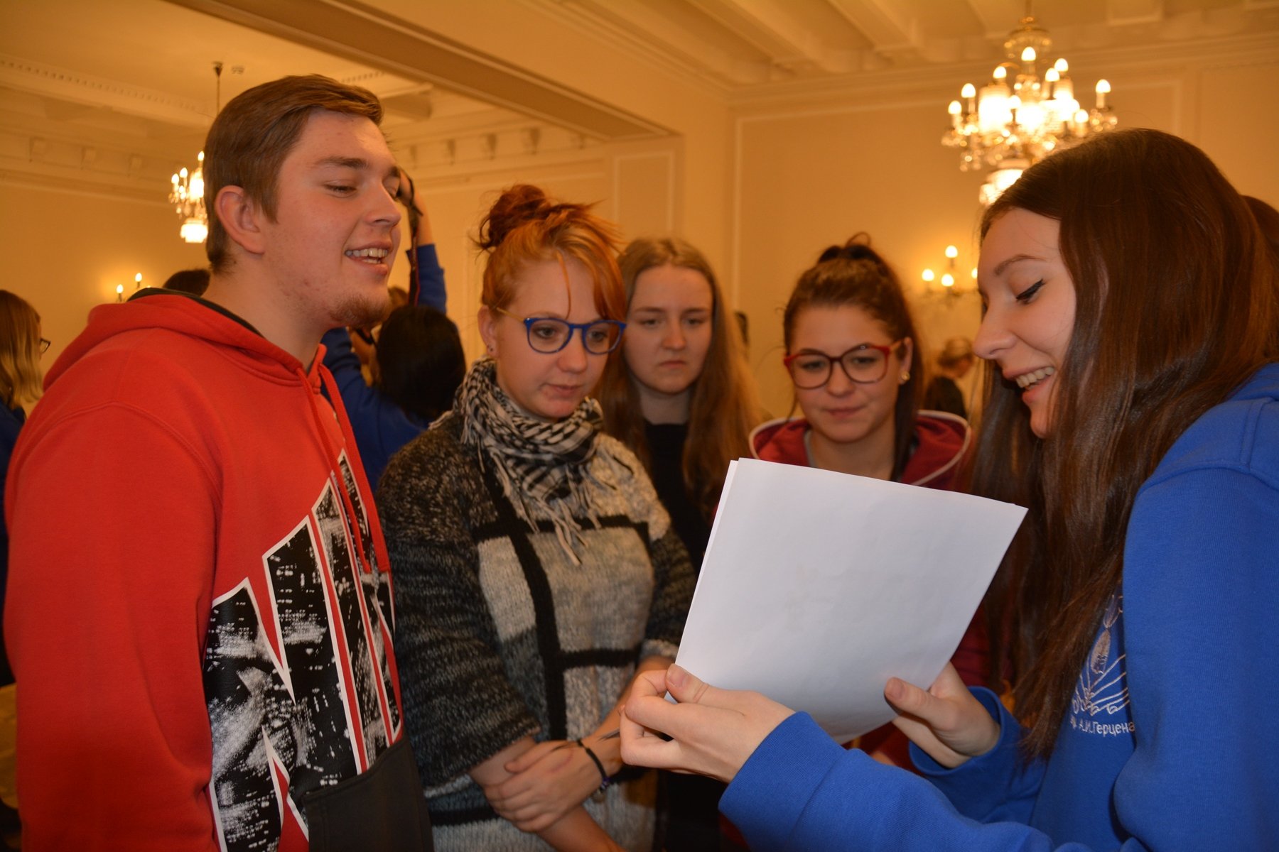 В Хрустальном зале чешских гостей ждал новогодний сюрприз, подготовленный участниками совместной чешско-российской образовательно-просветительской программы «Русский диалог: язык, образование, культура»: студентами Российского государственного педагогического университета имени А.И. Герцена (Санкт-Петербург) и студентами чешских вузов, которые изучают русский язык, при участии Международного культурного института «Ключ».