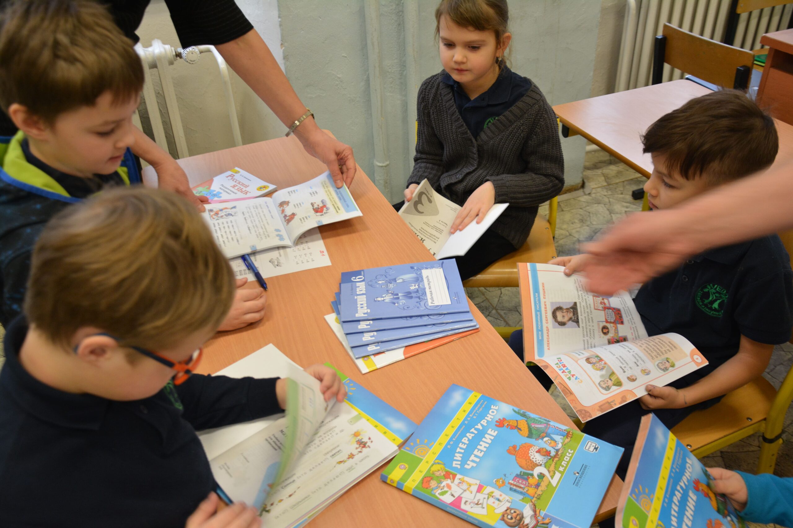 Часть книг была передана учащимся начальных классов, которые по достоинству оценили яркие и современные учебные пособия.