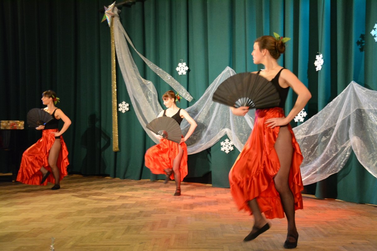 Вечер открыла «Полька» на музыку Бедржиха Сметаны в исполнении учениц группы «Ласточки» (7-11 лет). Затем с танцем «Вдохновение» и «Испанским танцем» из балета Петра Ильича Чайковского «Щелкунчик» выступила группа занимающихся боди-балетом учениц.