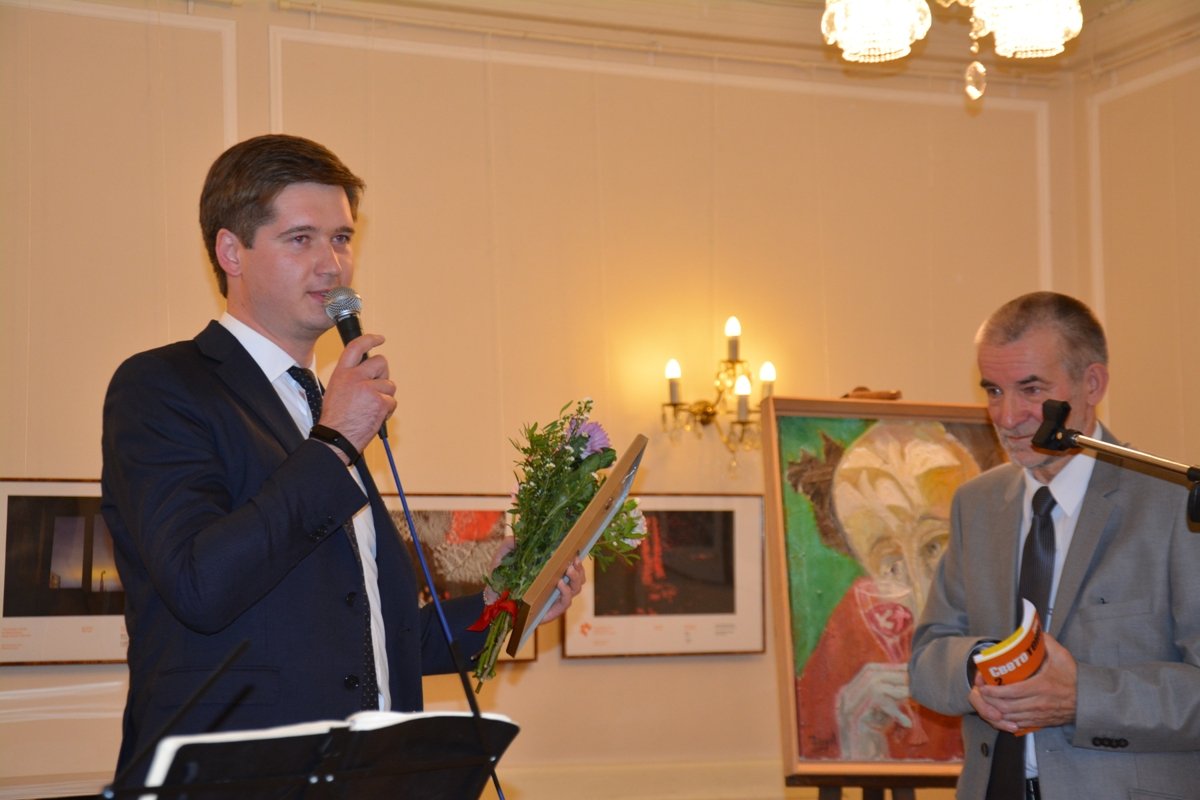 Затем выступила первый секретарь Посольства России в Чехии Екатерина Баранчеева, которая поздравила Олега Крылова с днем рождения и поблагодарила его от имени Посольства за многолетнее сотрудничество.