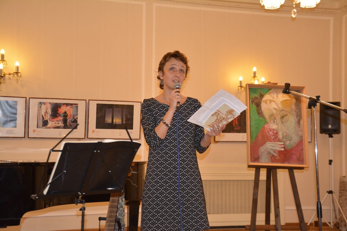 Открыл вечер главный редактор издания Олег Крылов. Он обратил внимание на уникальный характер издания, так как в него входят не только поэтические и прозаические произведения, но и отдельным разделом представлены события культурной и общественной жизни российских соотечественников в Чехии, которые можно посмотреть в видеозаписи с помощью соответствующего QR-кода.