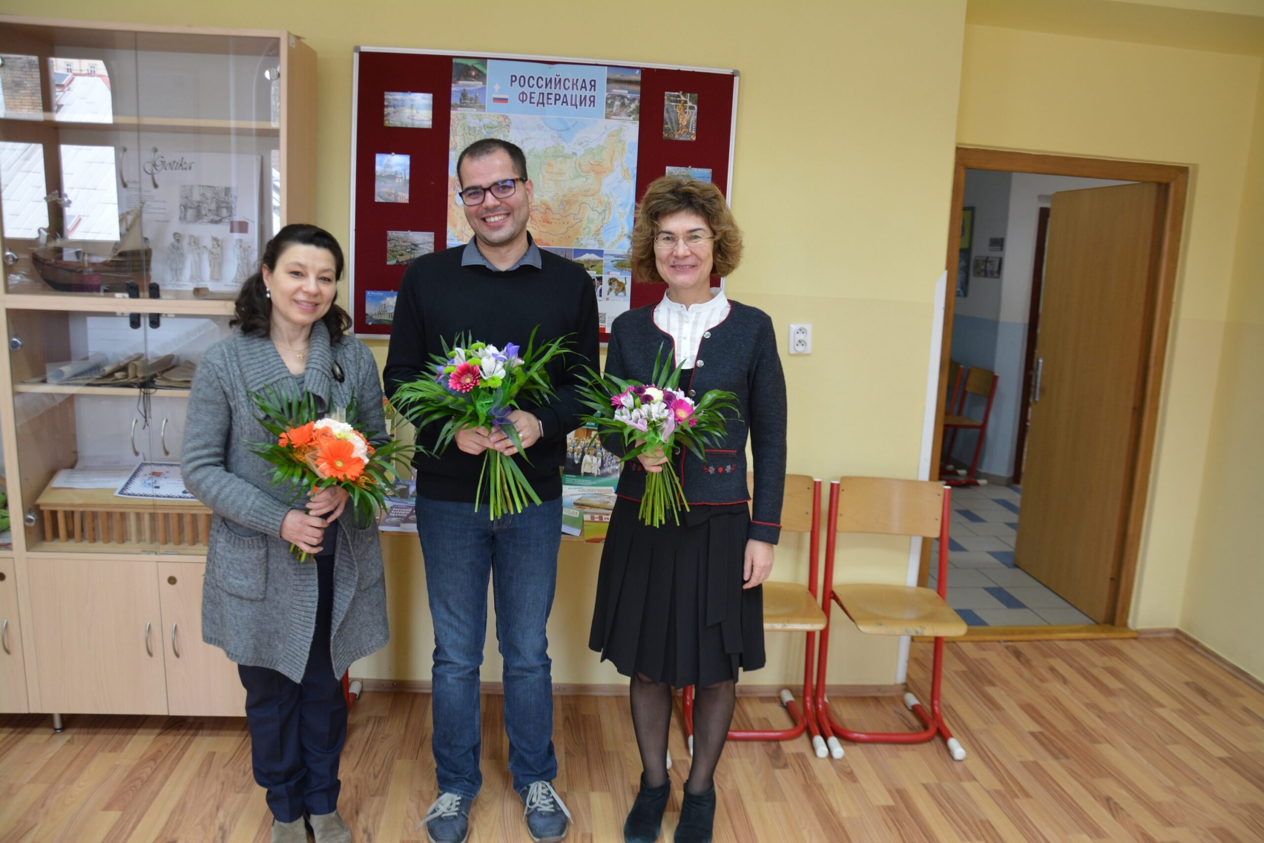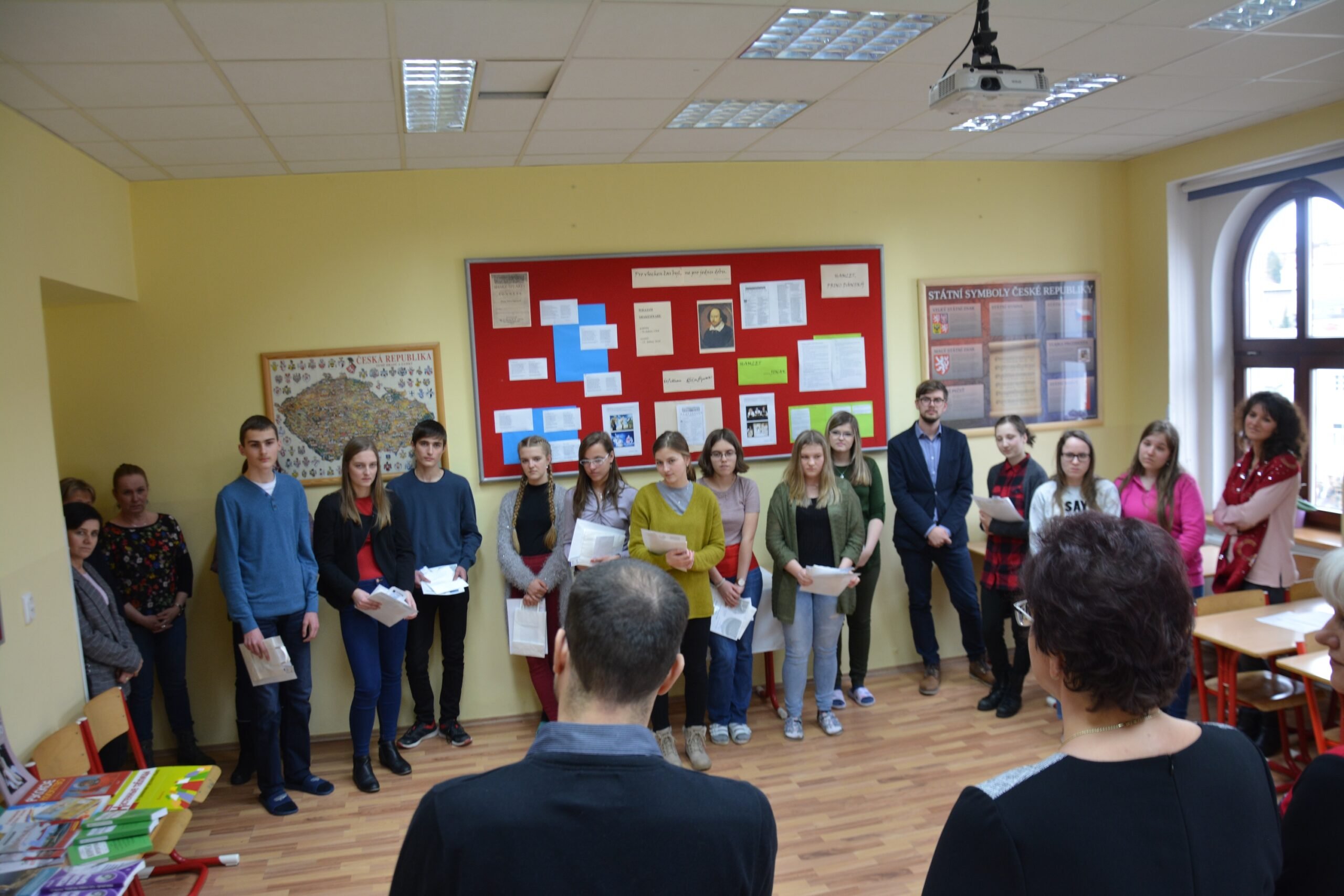 От РЦНК в Праге в дар Гимназии Ледеч над Сазавоу были переданы учебники русского языка как иностранного и методическая литература. Победители краевого тура примут участие в республиканском туре олимпиады, который пройдет 8 и 9 апреля с.г. в Российском центре науки и культуры в Праге.
