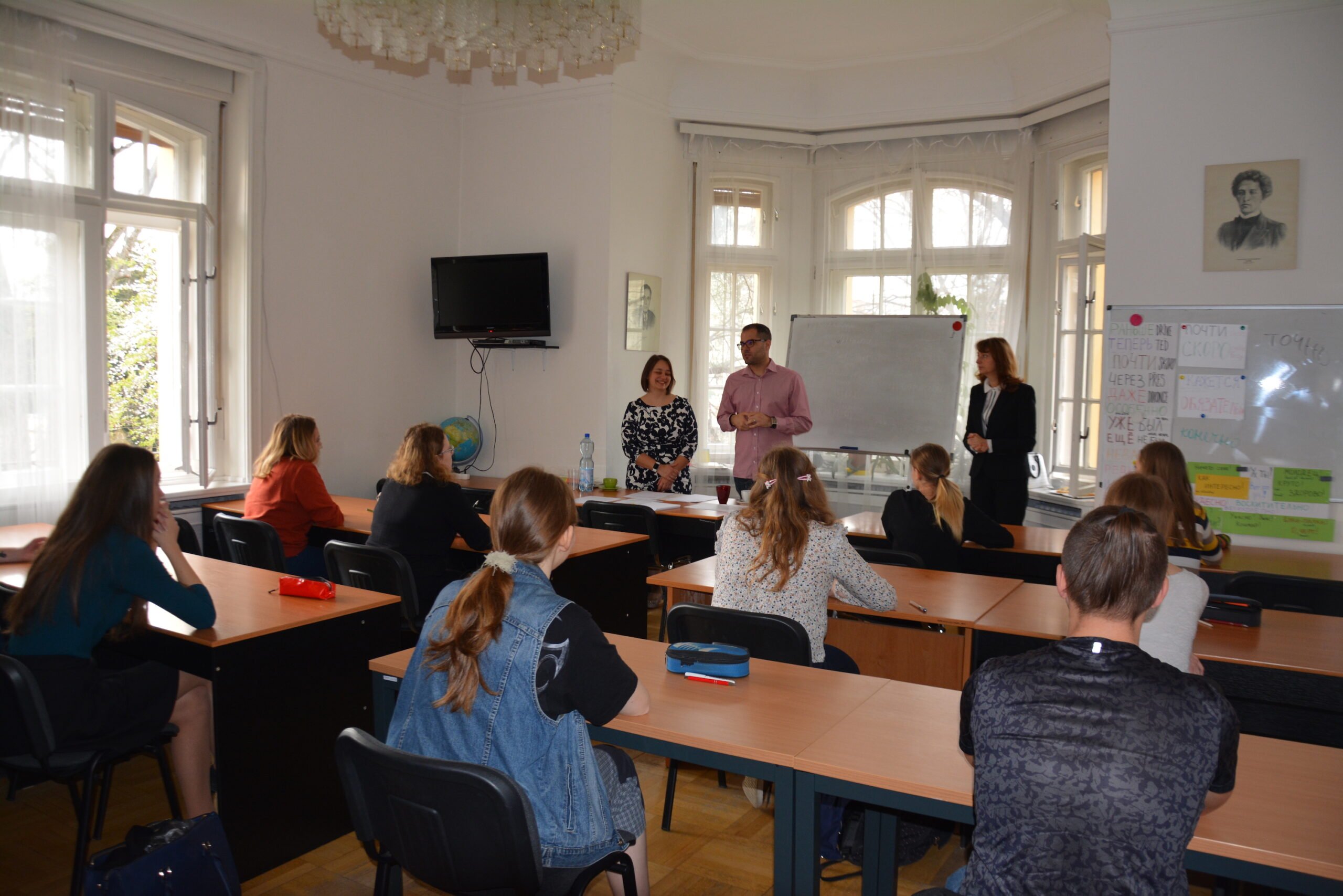 Для учителей, приехавших на Олимпиаду со своими студентами, были проведены презентации, на которых они узнали о деятельности РЦНК в Праге по поддержке изучения русского языка в Чехии, о программах повышения квалификации для преподавателей, о возможностях обучения в России и сдачи в РЦНК в Праге экзаменов по русскому языку как иностранному на международный сертификат.