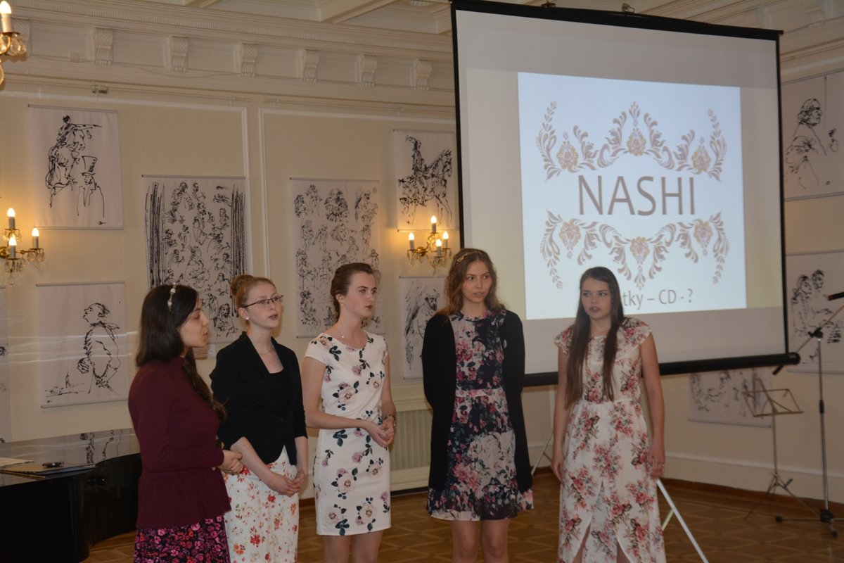 Лидер коллектива Луция Новотна подробно познакомила зрителей с историей становления коллектива, который возник в 2015 году в чешско-российском языковом лагере после совместного исполнения несколькими ученицами гимназии имени Йозефа Рессела из города Хрудим русских народных песен. Далее ансамбль «НАШИ» неоднократно участвовал в различных фольклорных фестивалях и конкурсах, проходивших в Праге, Градце Кралове, Хрудиме — «Покрова на Влтаве», «Арс поэтика. Памятник Пушкину» и других, организовывали вечера русской культуры и постановку спектаклей в своей гимназии. Сегодня в составе ансамбля пять учениц гимназии — Луция Новотна, Сара Аббоудова, Каролина Кабатова, Вероника Бурешова, Анежка Бурешова. Основной репертуар коллектива составляют русские, украинские и чешские народные и популярные песни.