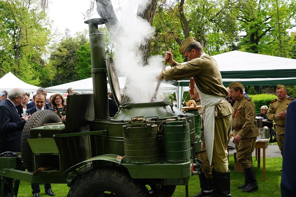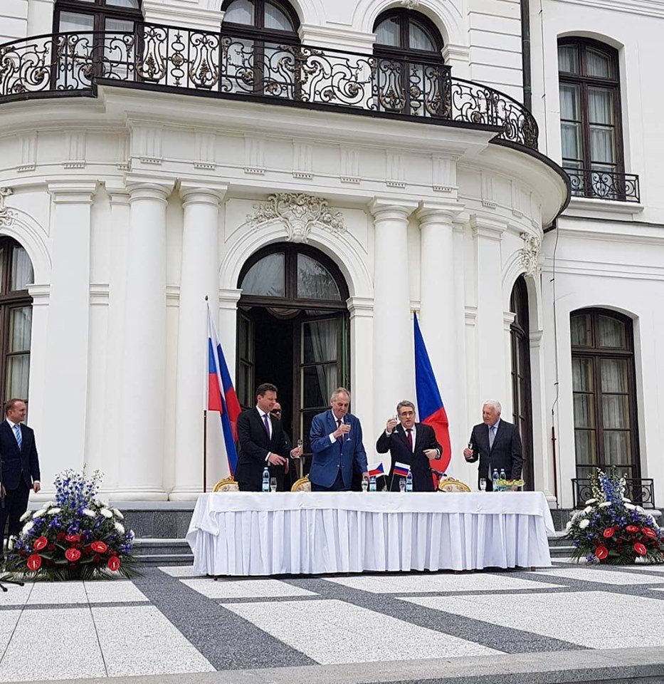 Выступивший на приеме президент Чешской Республики Милош Земан подчеркнул, что он пришел сюда, чтобы отдать дань памяти и уважения 140 тысячам красноармейцам положившим свои жизни за освобождение Чехословакии от фашизма. Затем подчеркнул, что современный мир стоит перед новой схожей угрозой. Только если в основе нацизма лежала расовая ненависть, то сегодня – ненависть религиозная. Призвал все страны, всех людей сплотиться в борьбе с угрозой исламского терроризма.