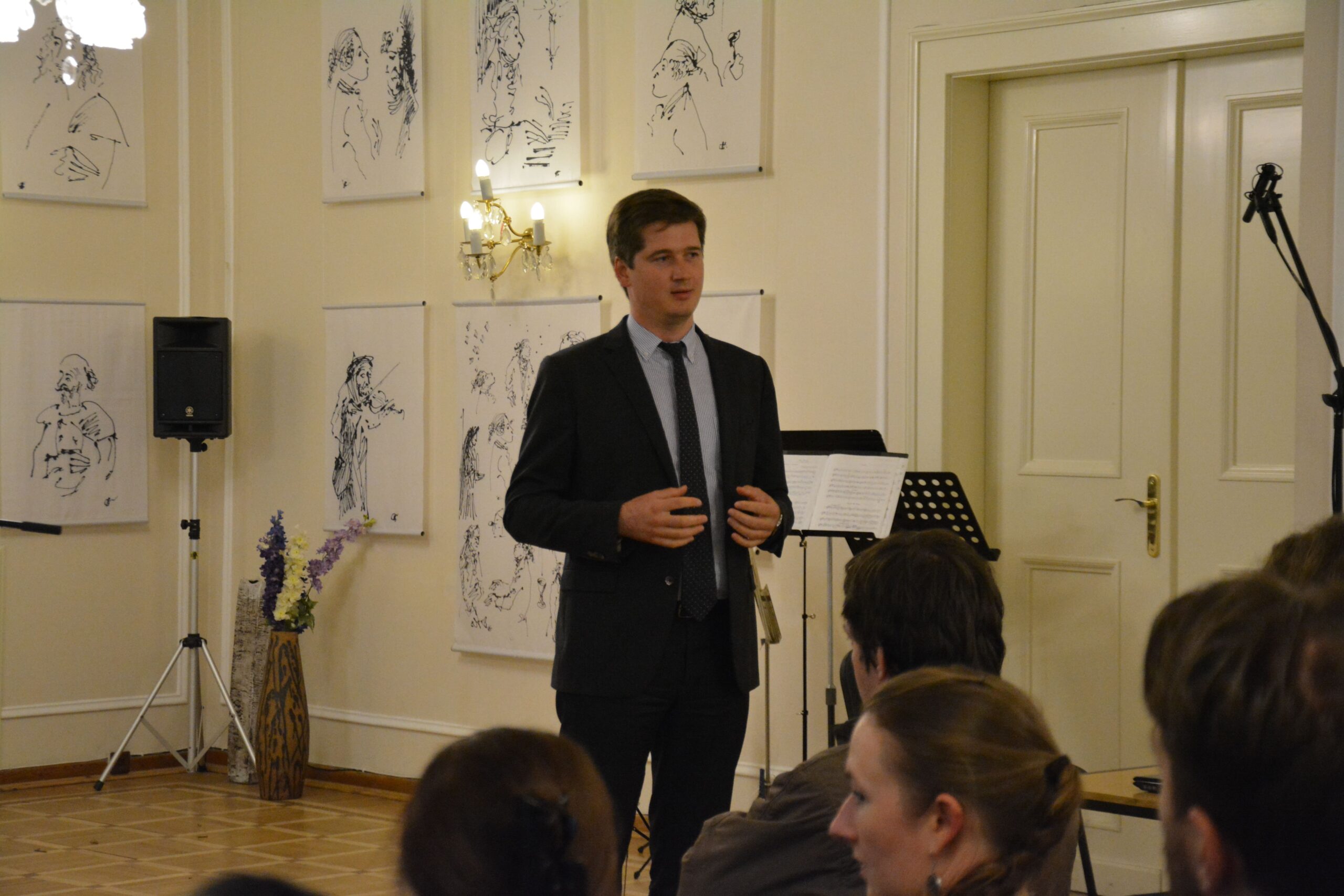Вечер открыл исполняющий обязанности руководителя представительства Россотрудничества в Чехии Андрей Кончаков, который представил Зузану Широку и пожелал приятного вечера.