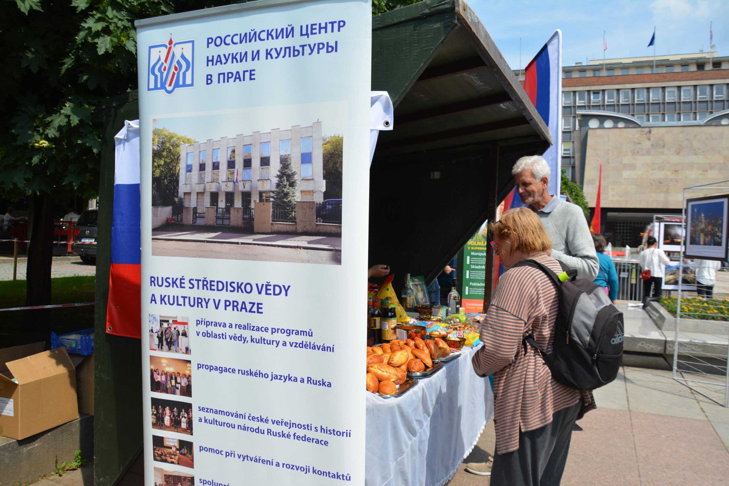 Россия была представлена объединенным стендом Российского центра науки и культуры в Праге и общественной организацией соотечественников «Ковчег-Арха». На стенде демонстрировались и раздавались информационные материалы РЦНК в Праге, буклеты курсов русского языка при РЦНК в Праге и ленточки с цветами российского флага. Также каждый здесь мог отведать блюда русской кухни и традиционные русские сладости.