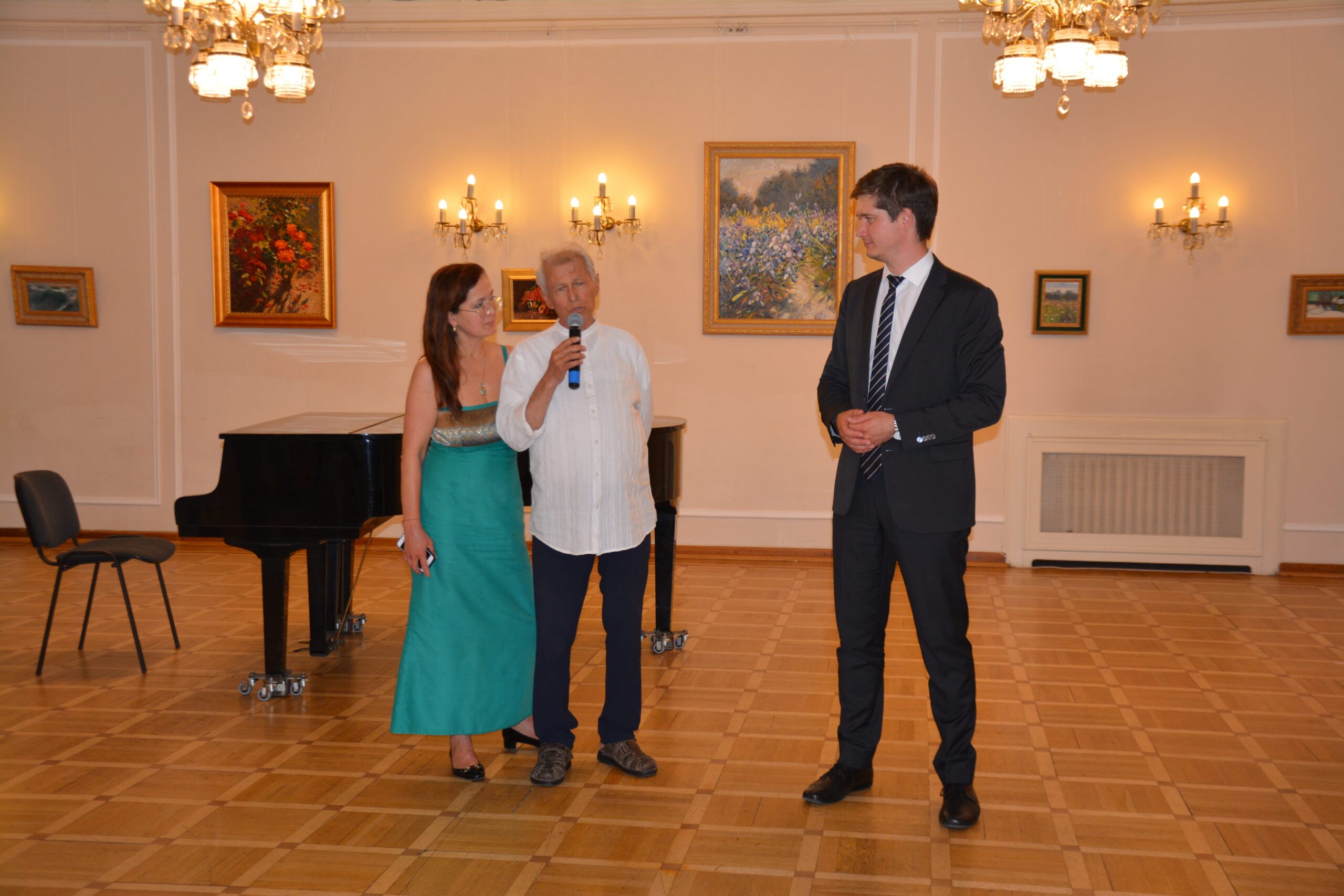Выставку открыл исполняющий обязанности руководителя представительства Россотрудничества в Чехии Андрей Кончаков, который представил художника и рассказал о его биографии и творчестве.
