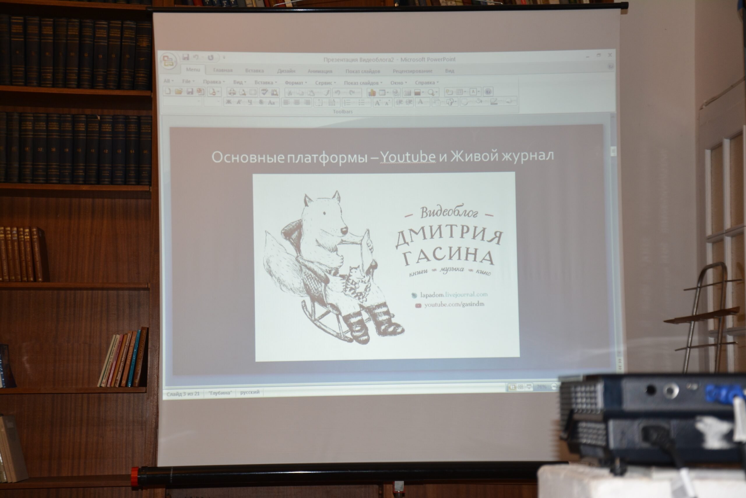 Дмитрий Гасин подробно рассказал и о том, как его хобби – видеоблог – переросло рамки увлечения и вышло на качественно новый профессиональный уровень, позволило ему делиться своими мыслями, полученными от учителей и друзей, донести их до людей и принести им пользу и радость. Вовремя и с душой прочитанная книга, по мнению Дмитрия Гасина, «становится частью личности, освещает всю жизнь». И с этой точки зрения социальные сети – важное направление, которое помогает собирать и анализировать мнения читателей, а также позволяет последним оставлять отзывы о книгах, что сегодня неоценимо важно.