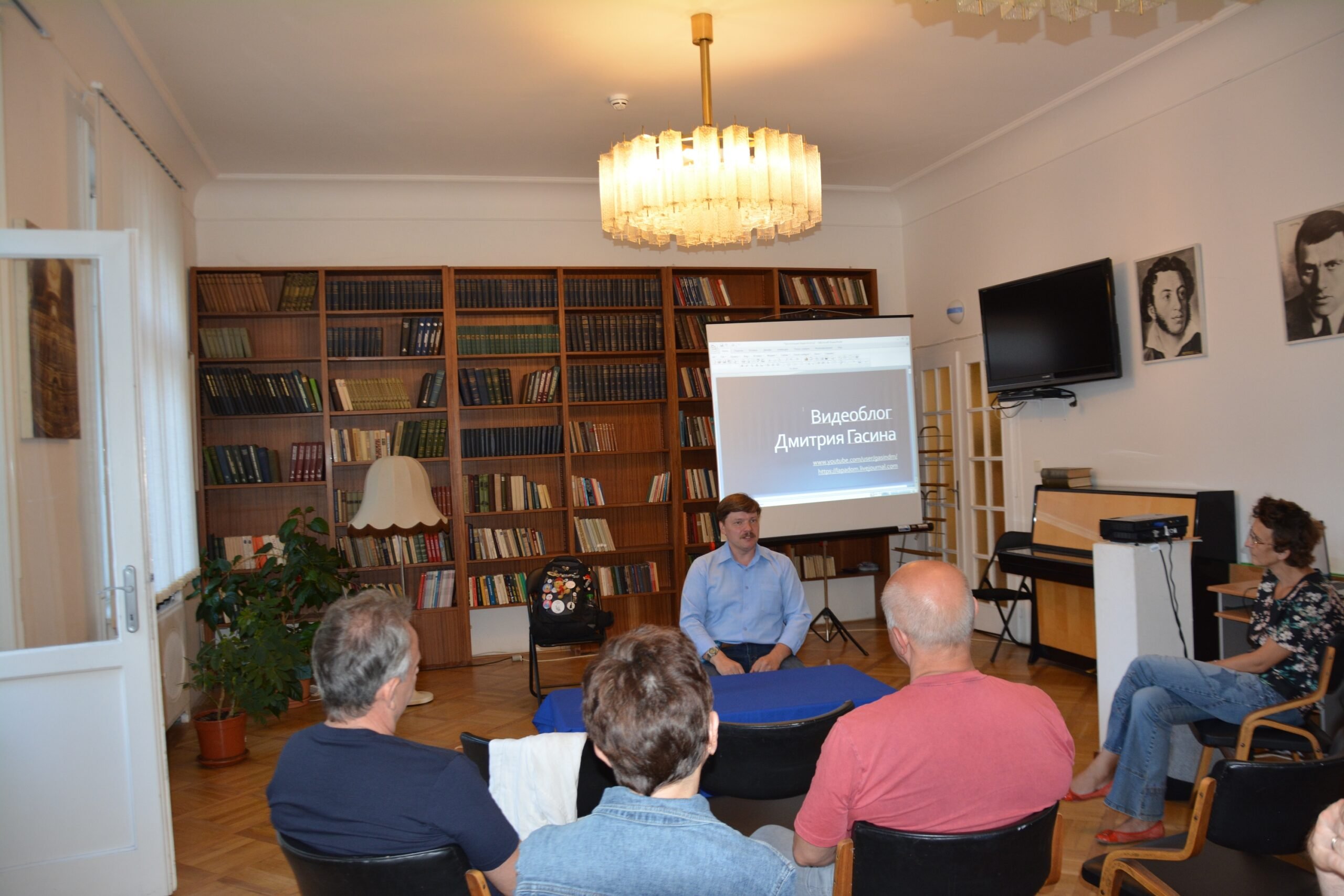 14 августа 2019 года в Литературной гостиной Российского центра науки и культуры состоялась творческая встреча с российским поэтом, книжным обозревателем и автором видеоблога Дмитрием Гасиным. Мероприятие состоялось при поддержке представительства Россотрудничества в Чешской Республике.