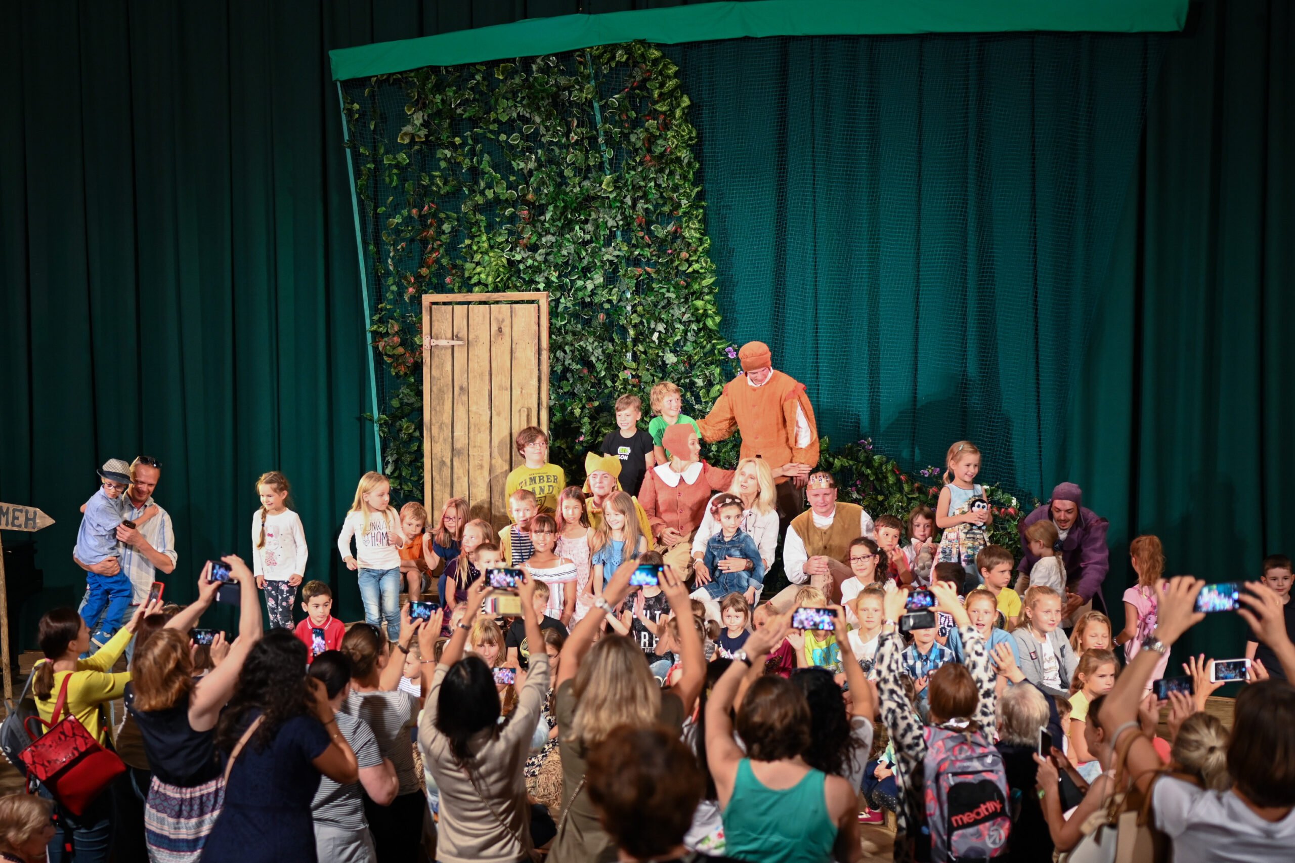 После спектакля Марина Корнева пригласила на сцену всех присутствующих в зале детей для общей фотографии.