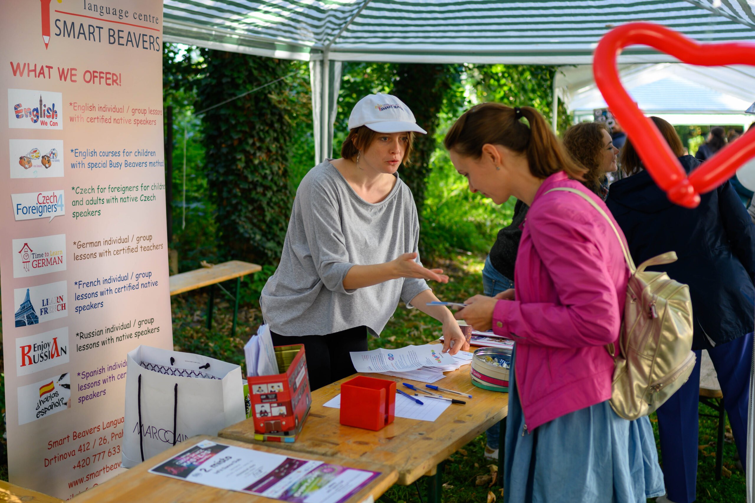 Шатры и стенды образовательных и досуговых школ и студий расположились на открытом воздухе перед главным зданием РЦНК в Праге. Посетители могли приобрести учебные материалы, книги, игры, а также принять участие в многочисленных мастер-классах и попробовать представленные на ярмарке традиционные угощения и блюда.