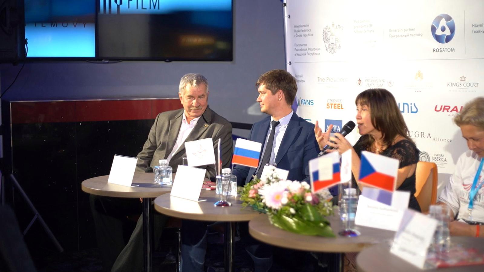 Также в пресс-конференции приняли участие актер и режиссер Александр Галибин, который представит в Праге свой новый фильм, военную драму «Сестренка», и баскетболист Иван Едешко, прославившийся «золотым пасом» в финале мюнхенской Олимпиады 1972 года. В фильме «Движение вверх», который также будет показан на фестивале, его сыграл Кузьма Сапрыкин.