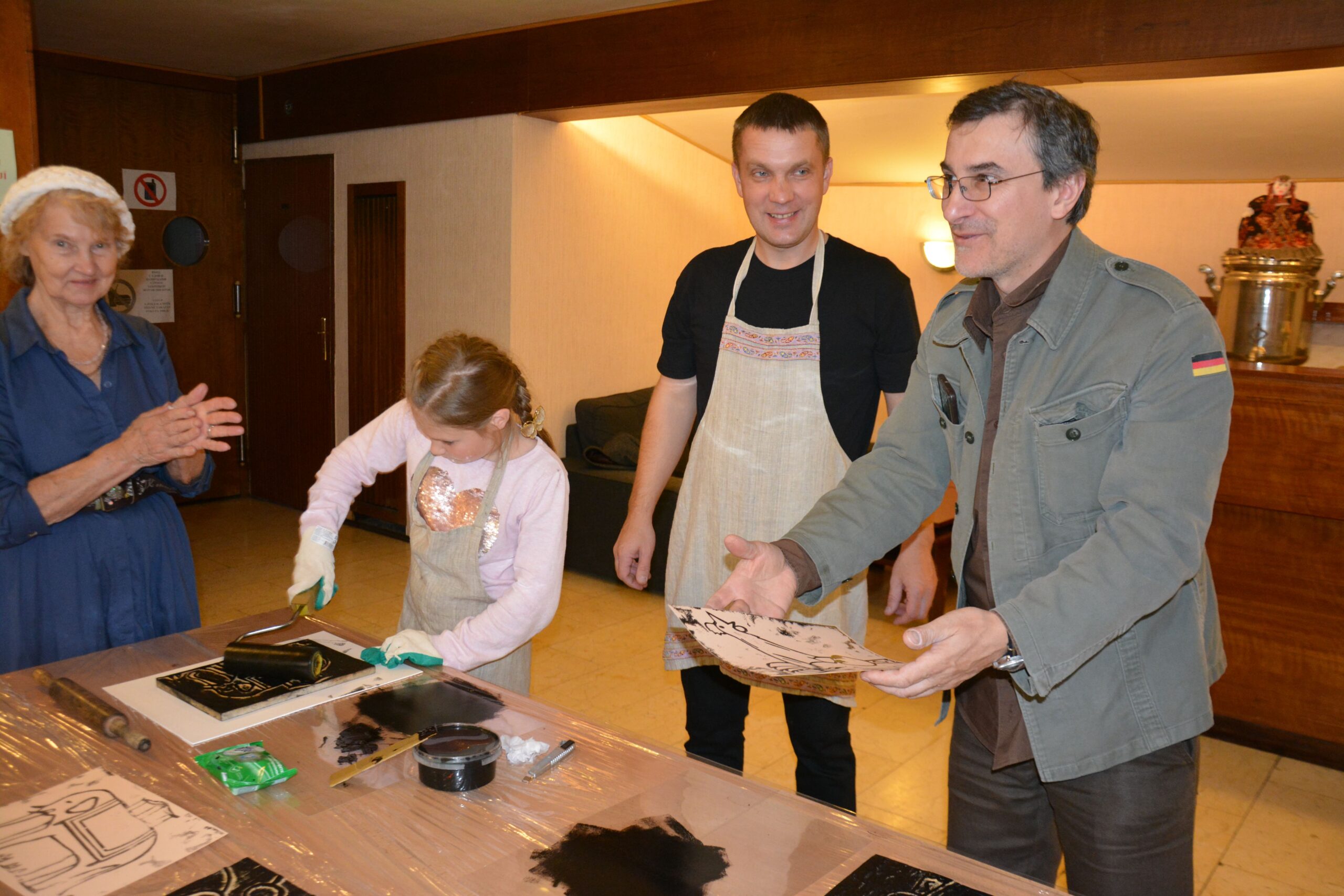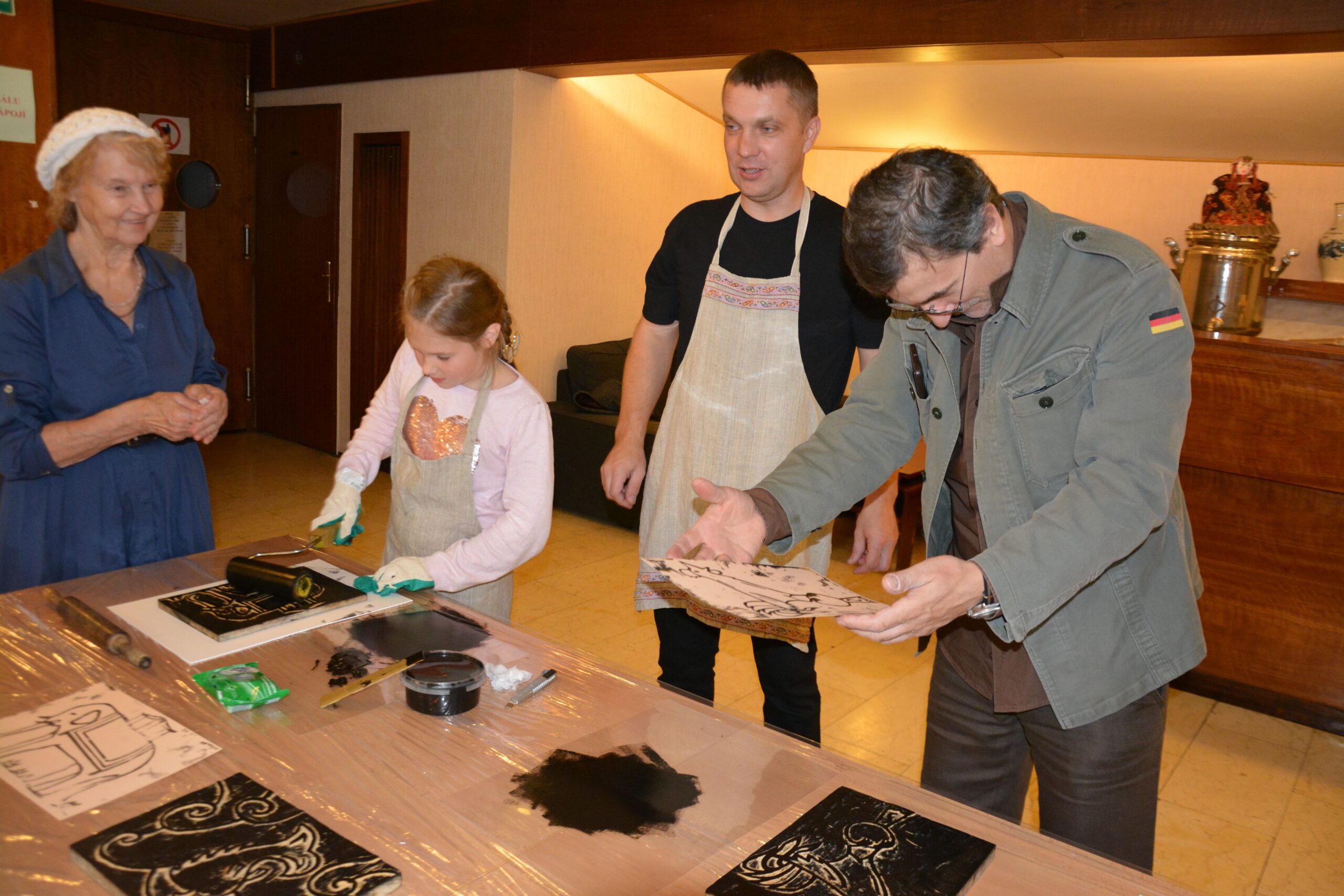 В рамках выставки дипломированный художник-график Александр Иванов провел для ее гостей мастер-класс «Русские лубочные картинки». Участники мастер-класса могли изготовить свою собственную копию лубочной картинки XIX века из собрания Пушкинского музея-заповедника, используя липовые доски. Этот процесс так захватил взрослых и детей, что многие унесли с собой по несколько самодельных эстампов.