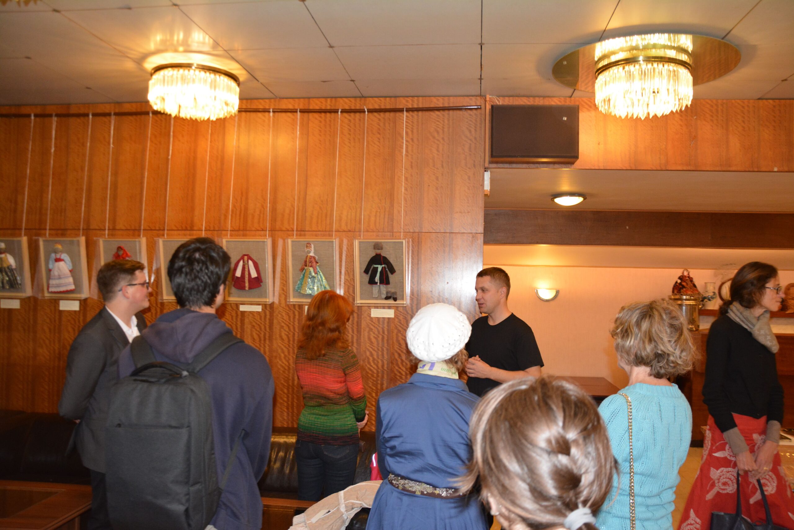 Специалист отдела экспозиционной и выставочной деятельности Дмитрий Григорьев рассказал посетителям об особенностях русского национального костюма 19 века. Отметил, что традиционно в Псковской области одежда изготавливалась из льна, из которого крестьяне делали тонкие, плотные и грубые ткани, окрашивали их в синий цвет с помощью краски «индиго», смеси воска и глины. Главным требованием, — заметил Дмитрий, — которое предъявлялось к крестьянской одежде, было удобство, дававшее свободу движений.