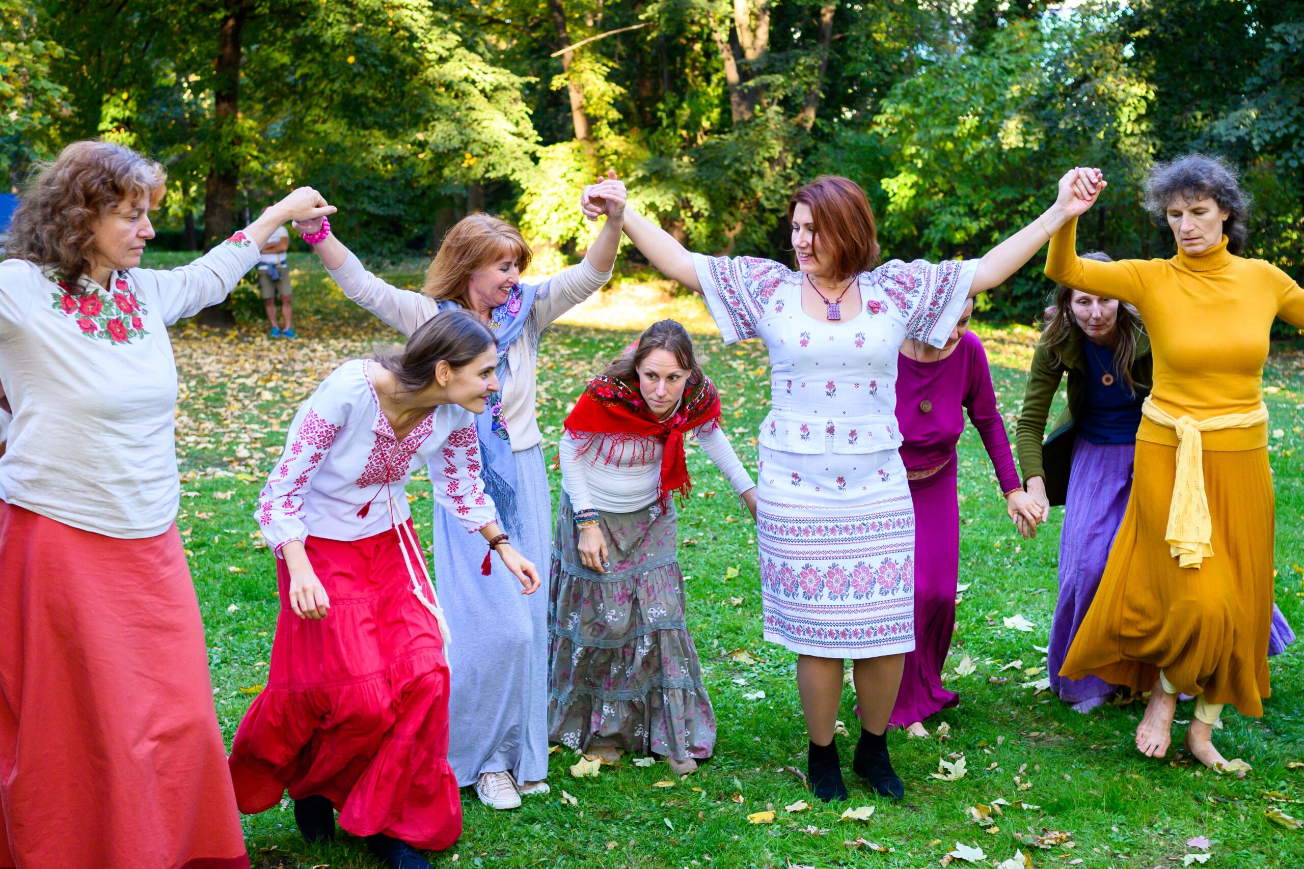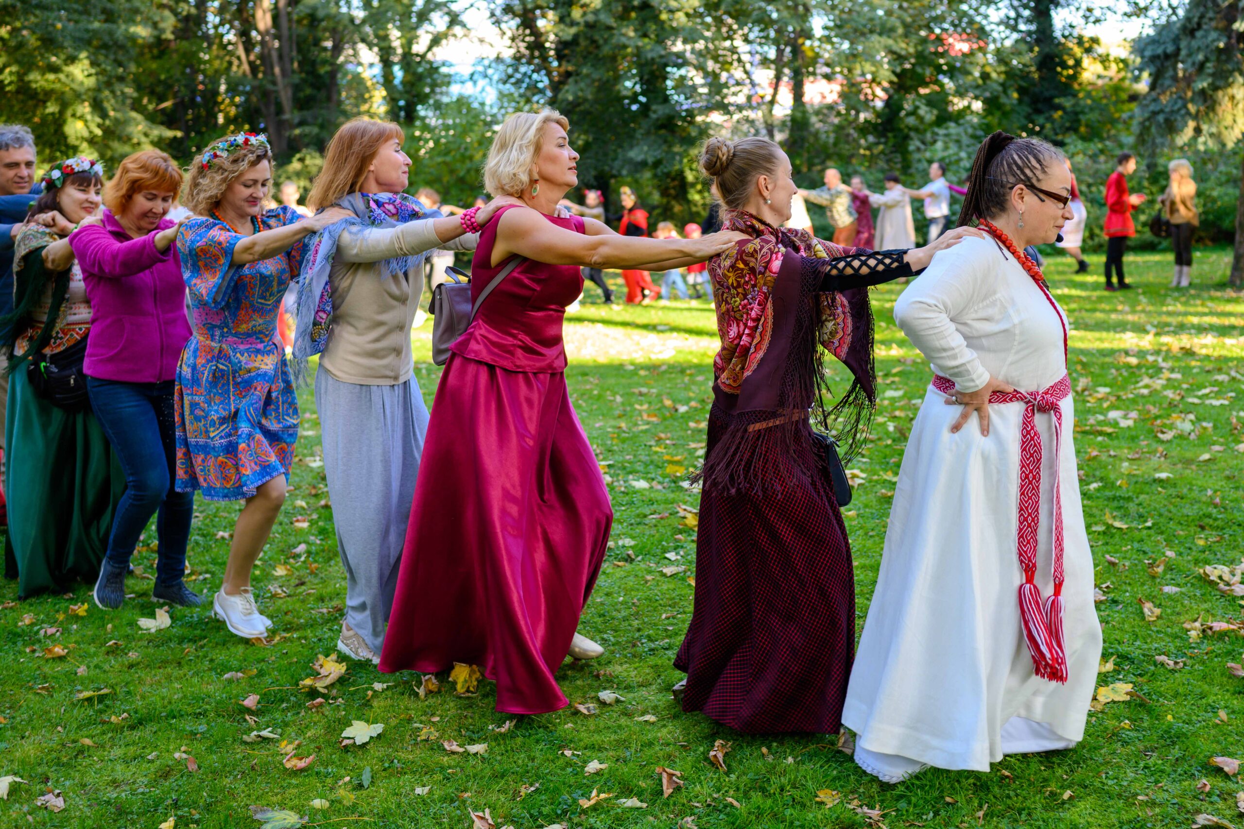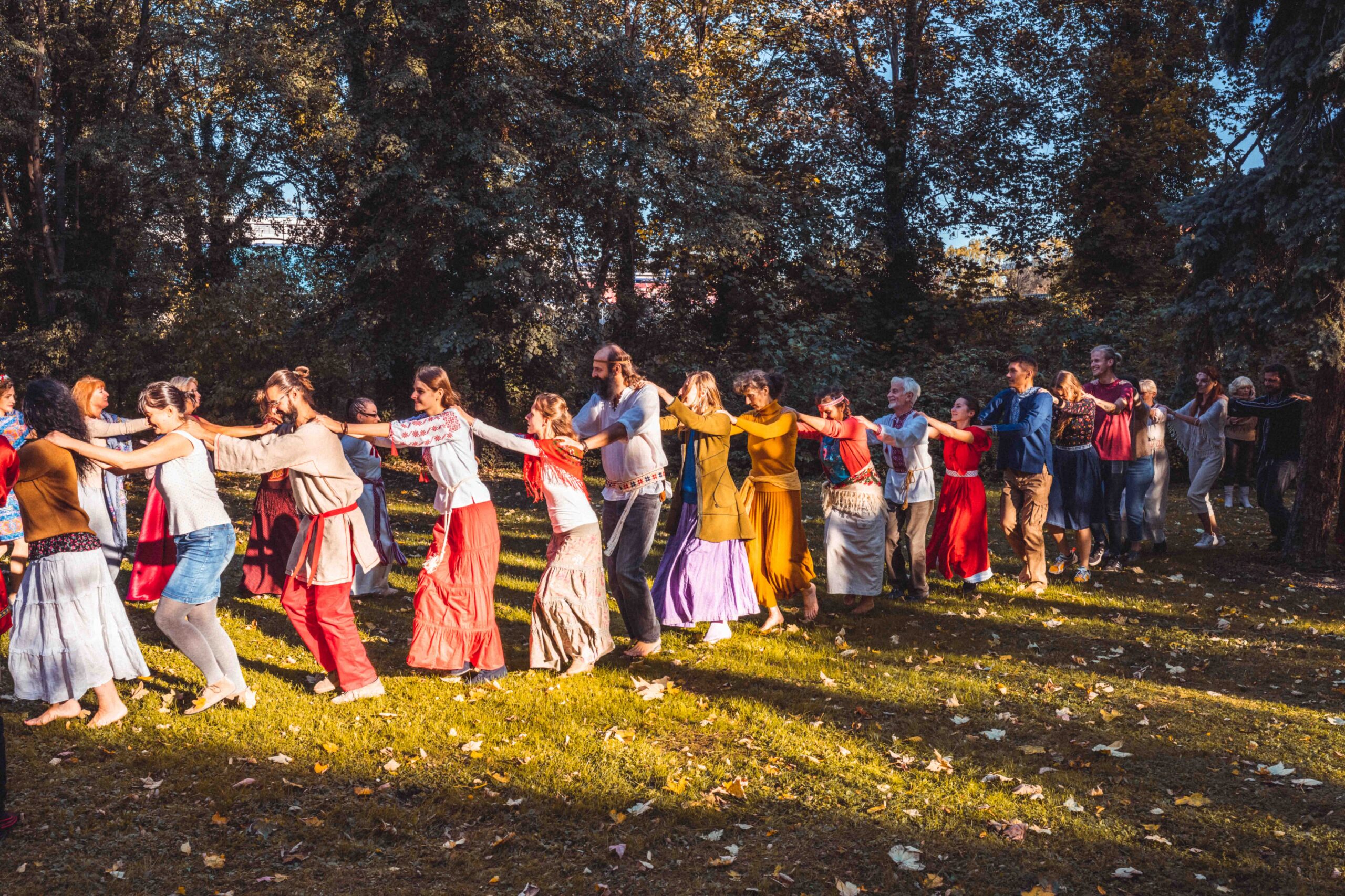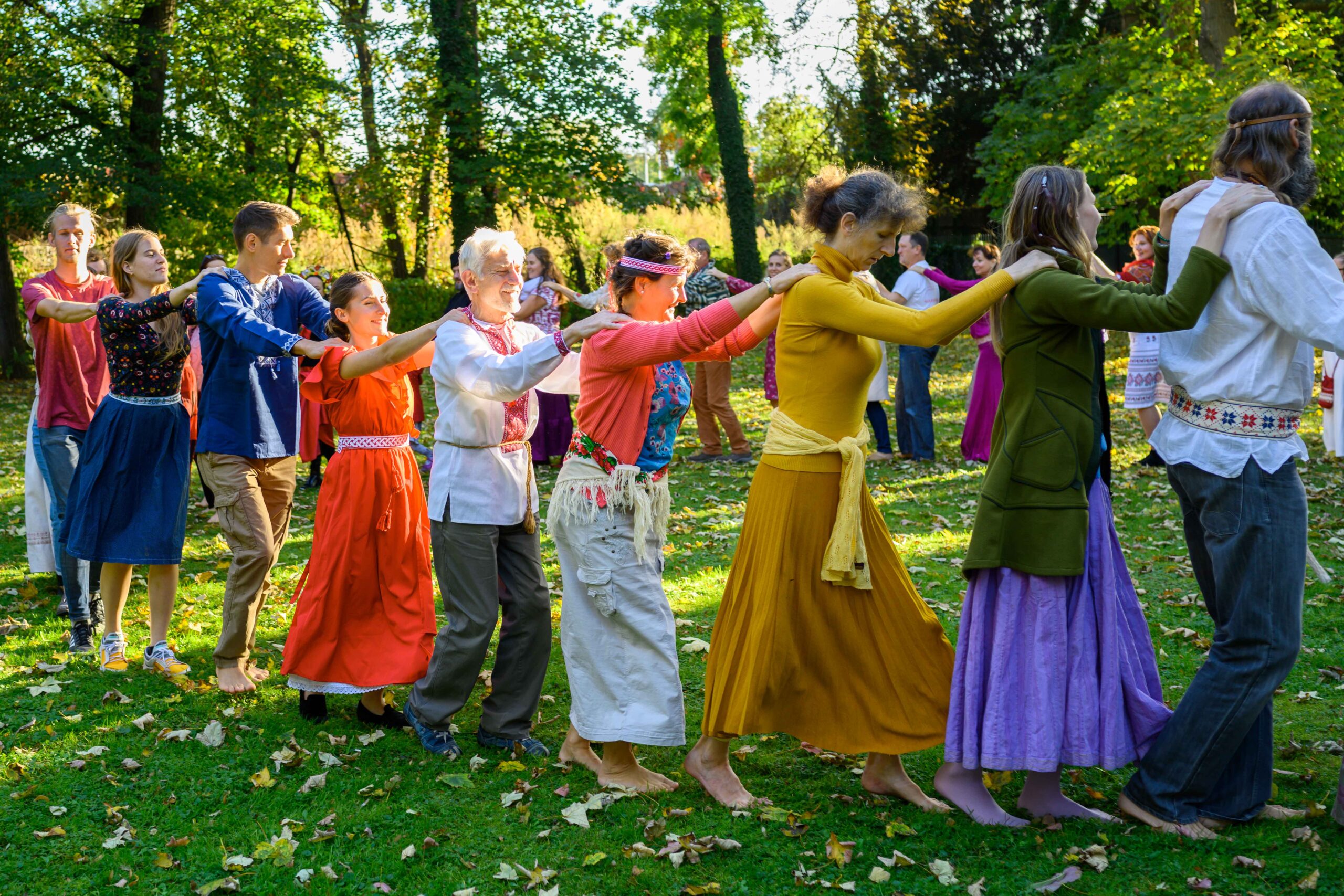 В программе были представлены не только традиционные хороводы Восточных славян, но также круговые танцы народов мира. Все желающие смогли принять участие в старославянских играх и танцах на открытом воздухе.