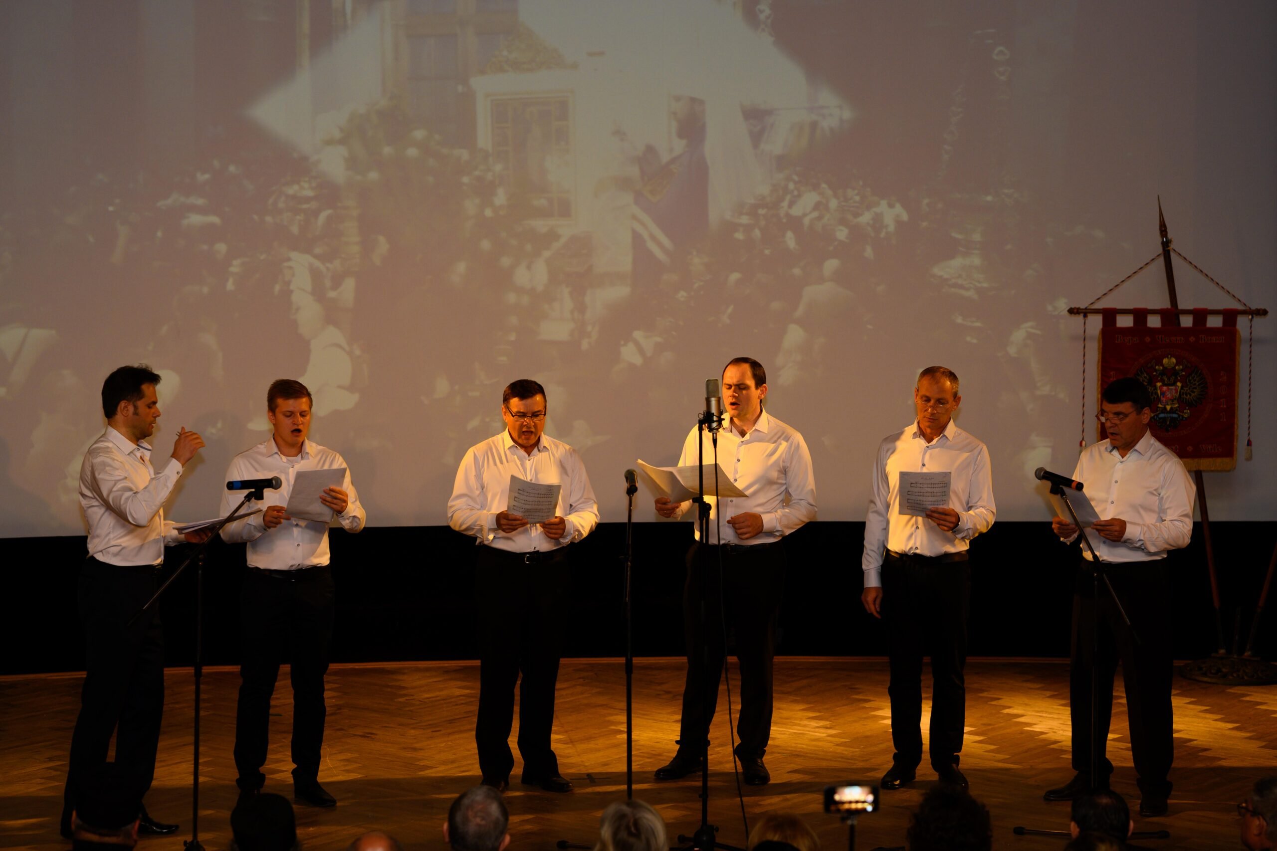 Атаман Всеказачьего союза Чешских земель и Словакии Михаил Дзюба рассказал собравшимся о православном празднике Покрова Пресвятой Богородицы и его связи с историей казачества. Затем присутствующие почтили минутой молчания память чешского певца Карела Готта и первого человека, вышедшего в открытый космос, дважды Герой Советского Союза Алексея Архиповича Леонова. Пражский мужской камерный хор исполнил молебную песнь «За упокой».