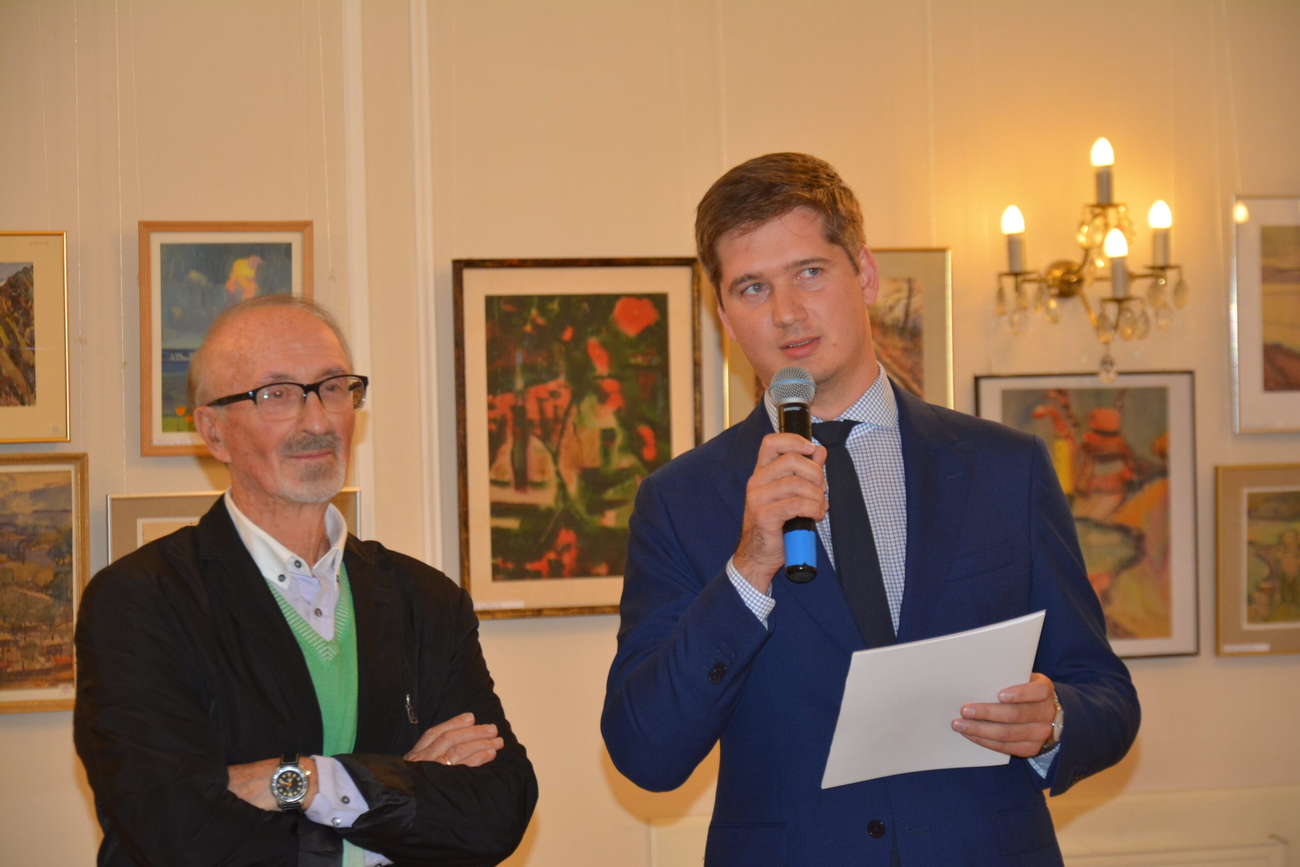 Выставку открыл исполняющий обязанности руководителя представительства Россотрудничества в Чехии Андрей Кончаков, который представил художника и рассказал о его биографии и творчестве.