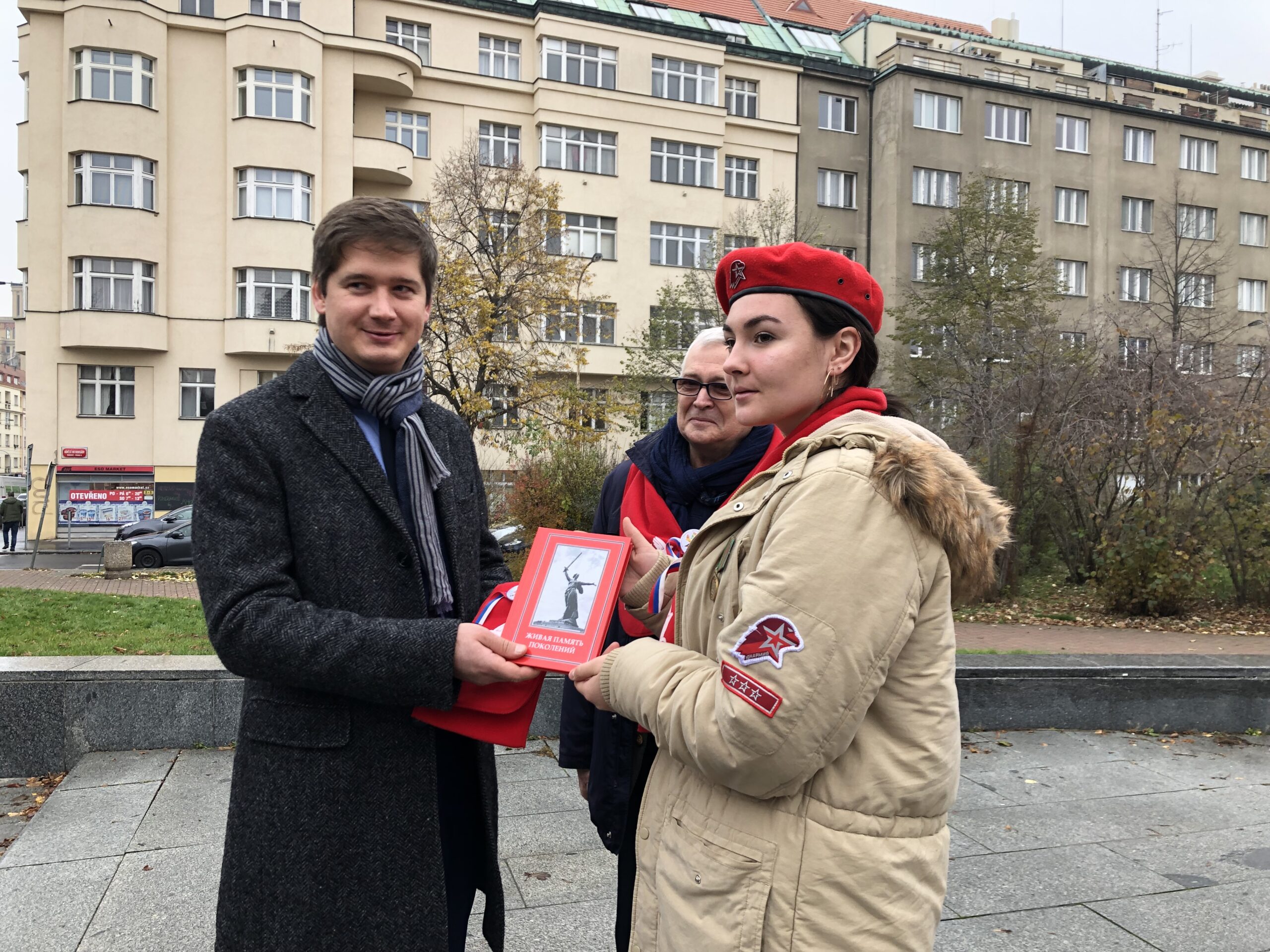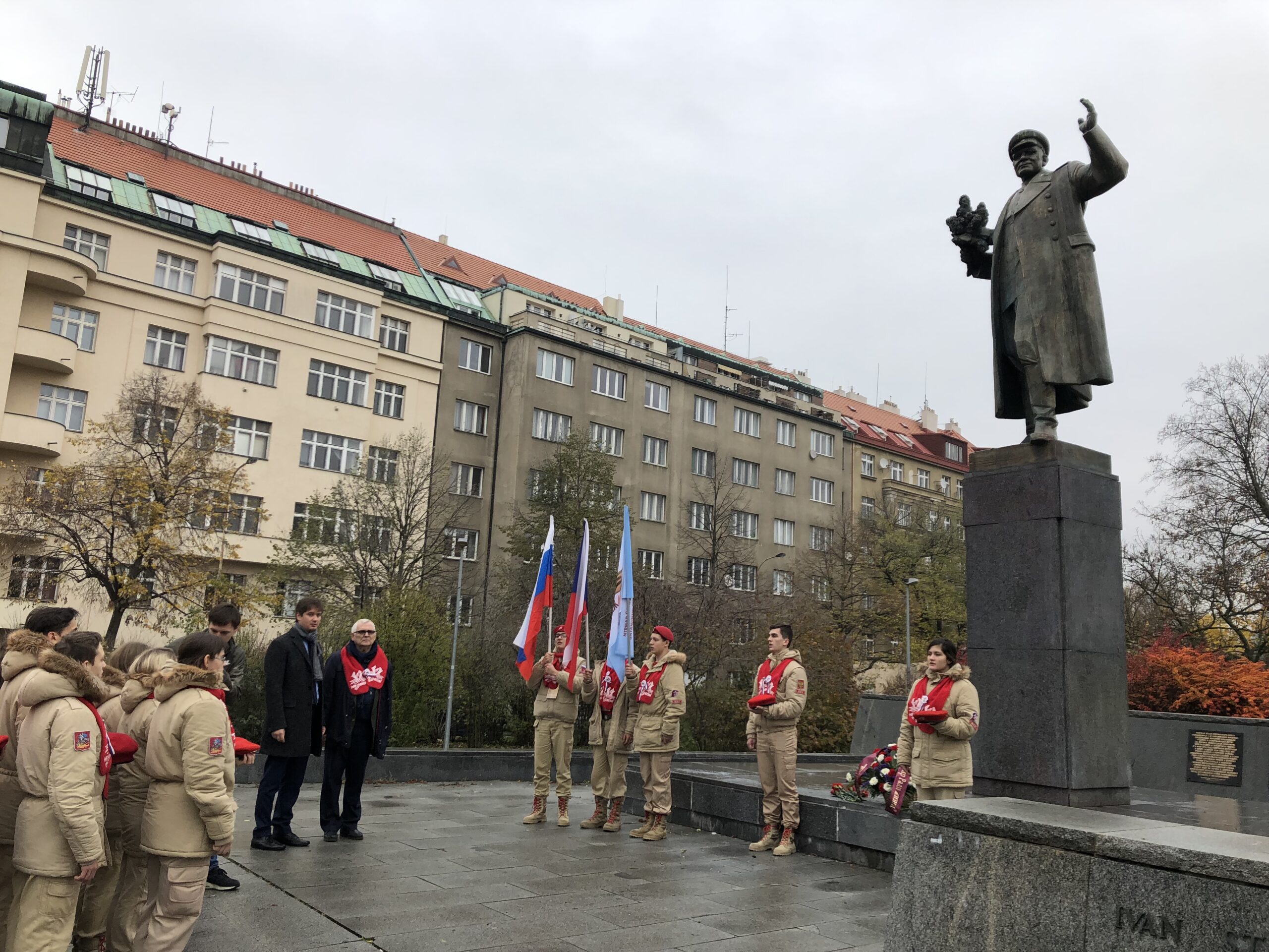 Российские школьники и студенты возложили цветы к памятникам освободителей Праги