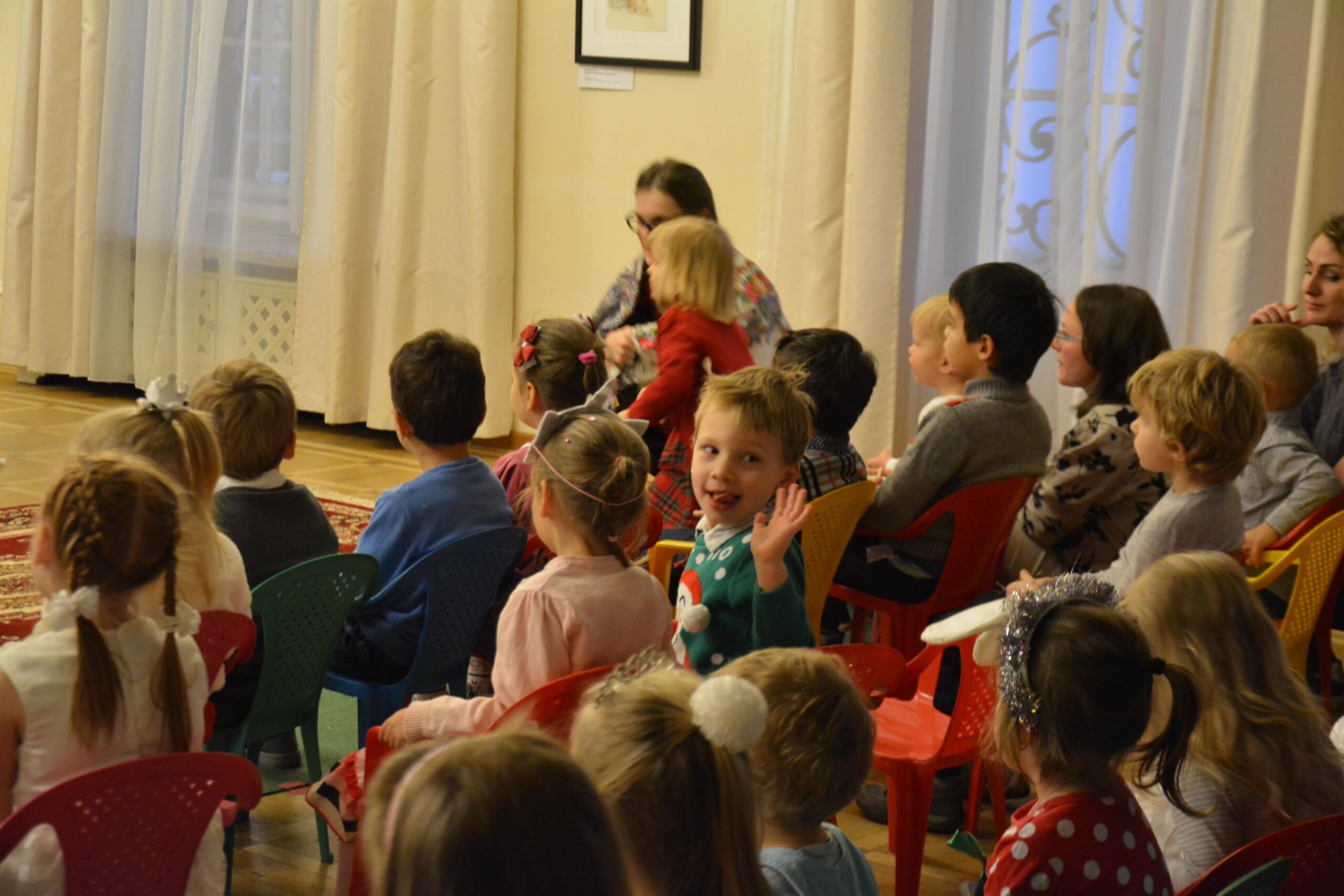 Разыгрываемые спектакли и игры вызвали большой интерес у маленьких зрителей, которые с радостью принимали участие в действии, общались с артистами и помогали им.