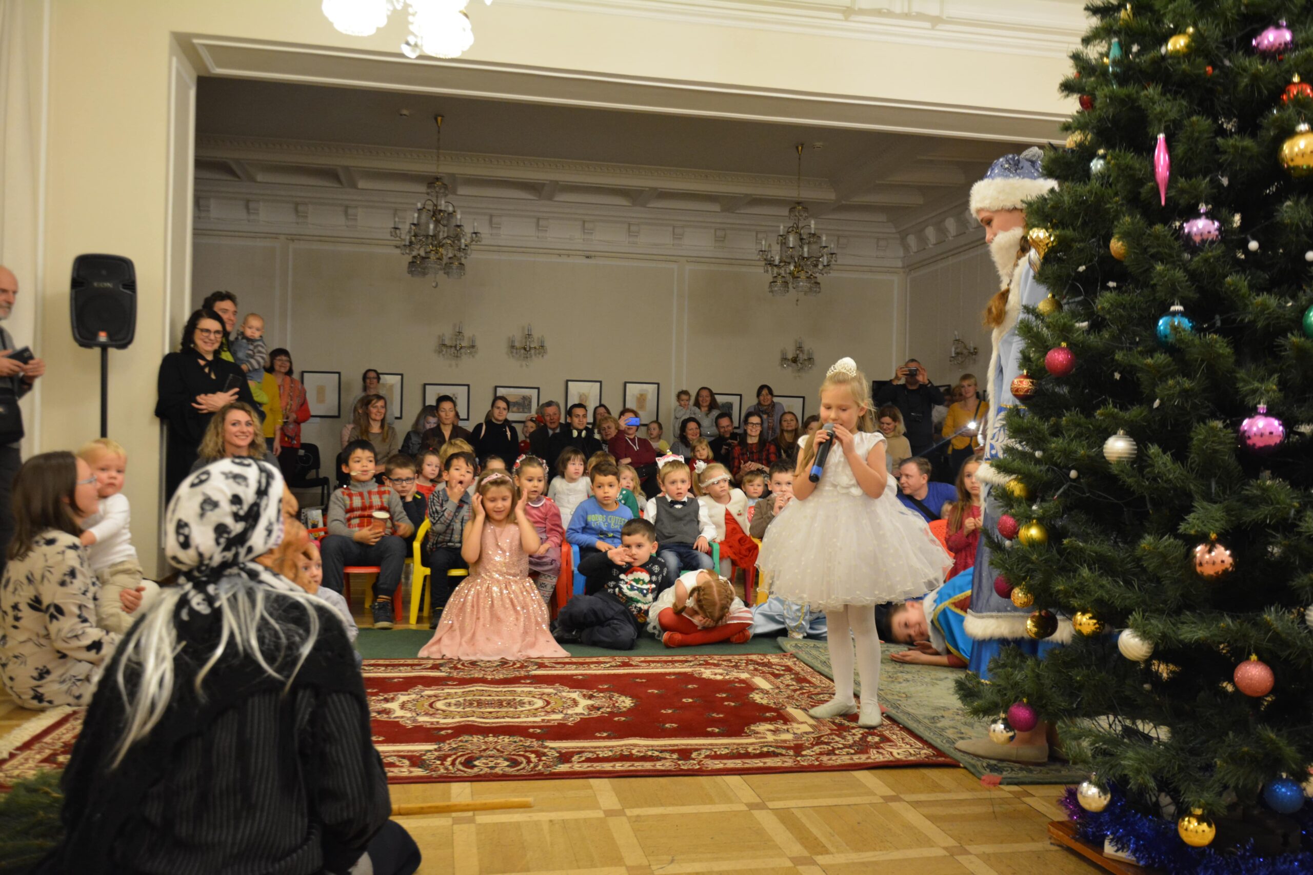 Атаман Михаил Дзюба приветствовал маленьких гостей праздника и их родителей. По традиции он рассказал об истории празднования казаками новогодних праздников в Чехии. По его словам, первая рождественская «казачья елка» отмечалась в Чехословакии в далеком 1922 году, а в истории современной Чехии «атаманская елка» проходит уже в восьмой раз. Он отметил, что в этом году на Благотворительную «атаманскую елку» приглашены дети из Воскресной школы Храма Успения Пресвятой Богородицы. Михаил Дзюба также поздравил присутствующих с наступающими праздниками и пожелал праздничного настроения.