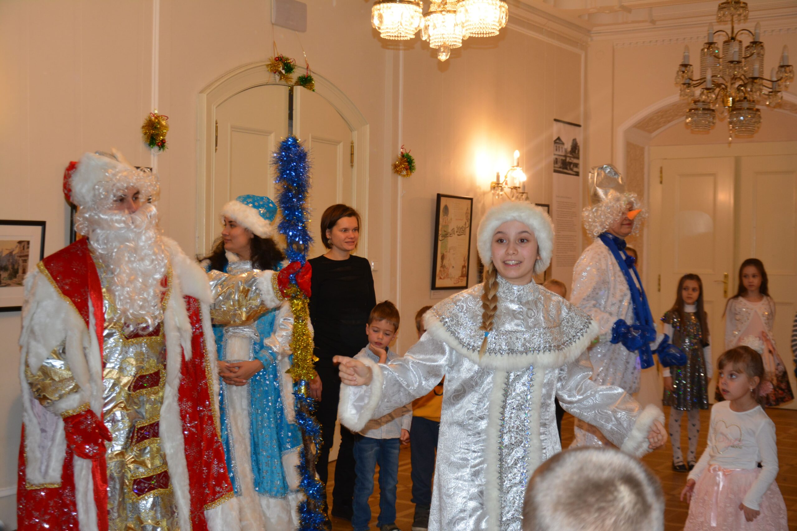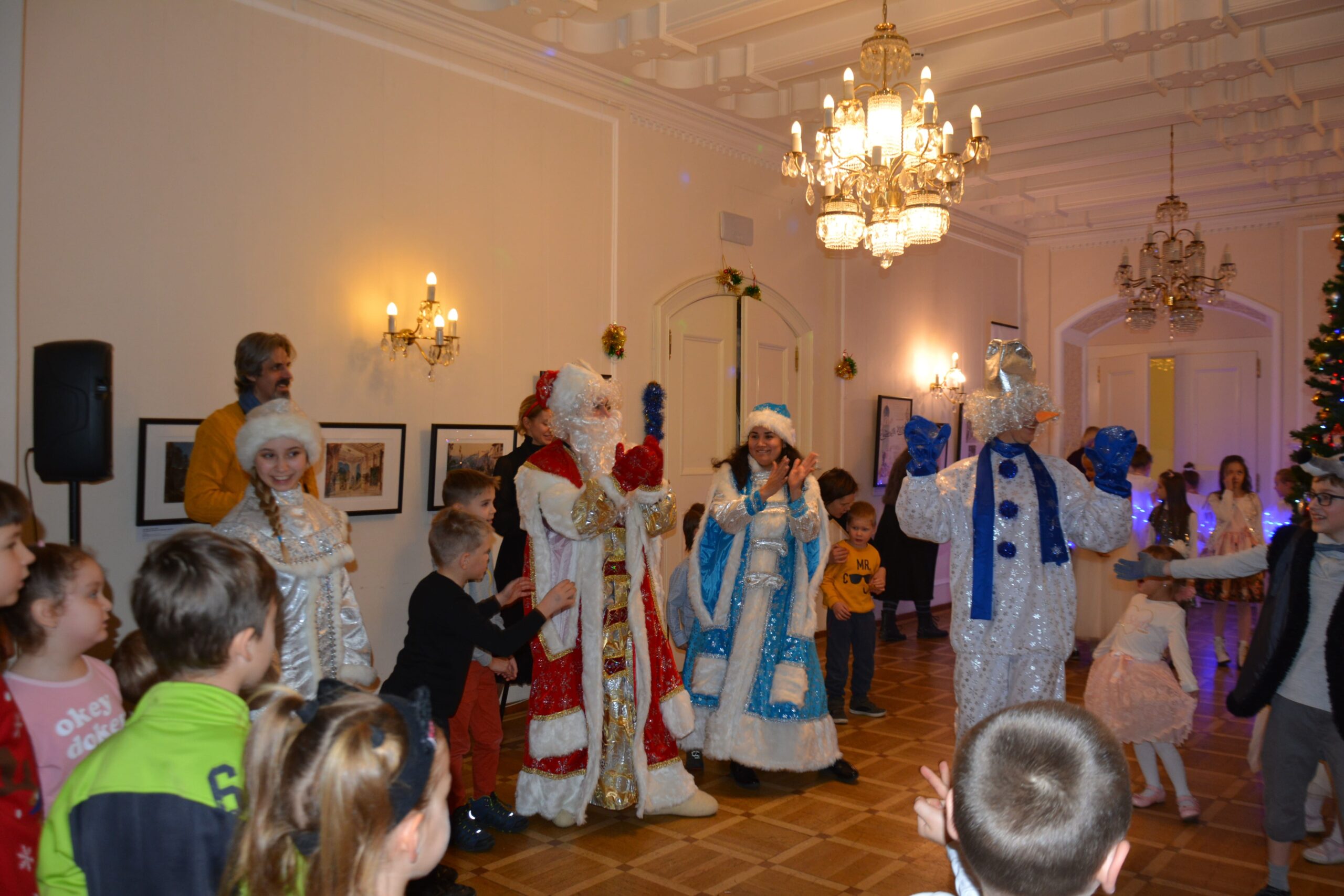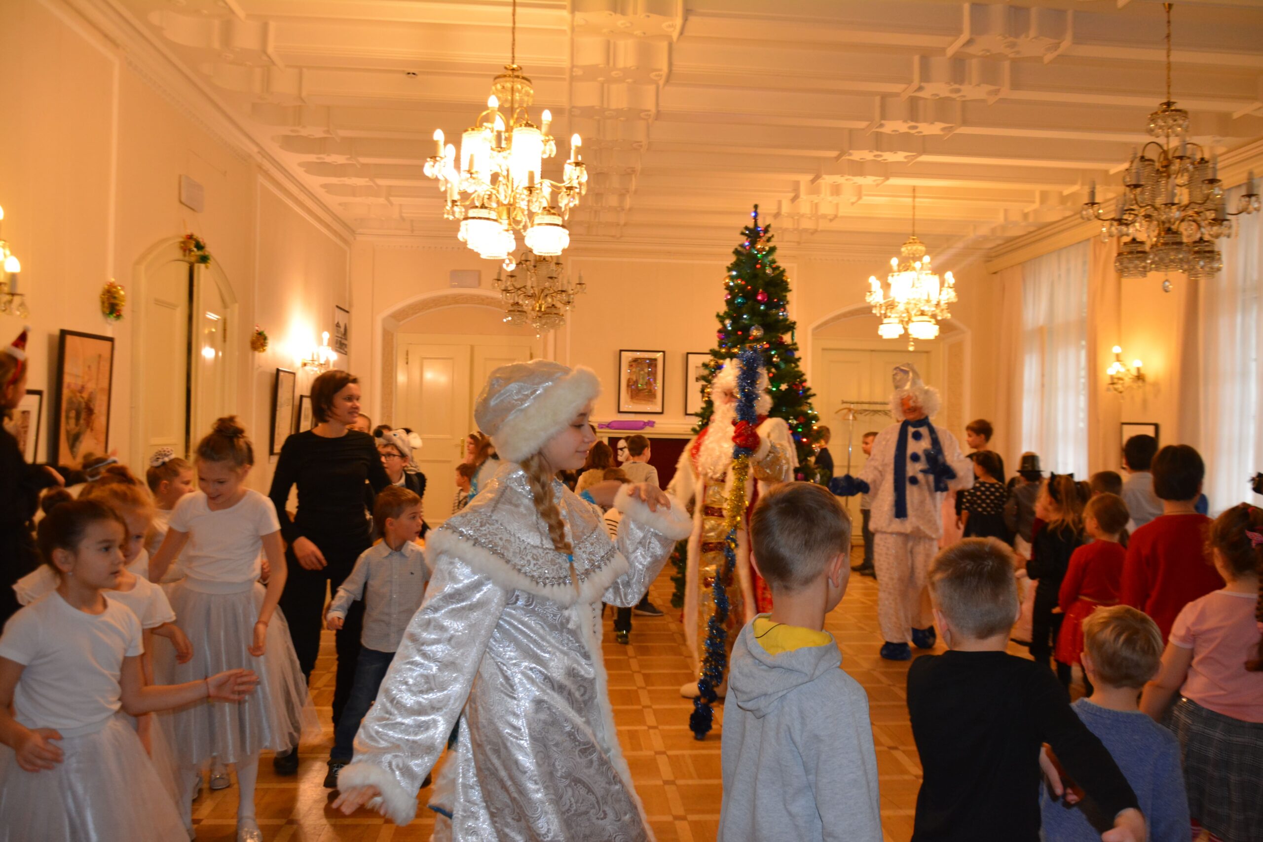 На праздничных елках дети по традиции водили хороводы, отгадывали загадки, танцевали и пели песни, а в конце – получили сладкие подарки. В этом году, помимо привычных Деда Мороза и Снегурочки, маленькие зрители познакомились со Снежной королевой, волшебным Снеговиком и Веселым зайчиком.