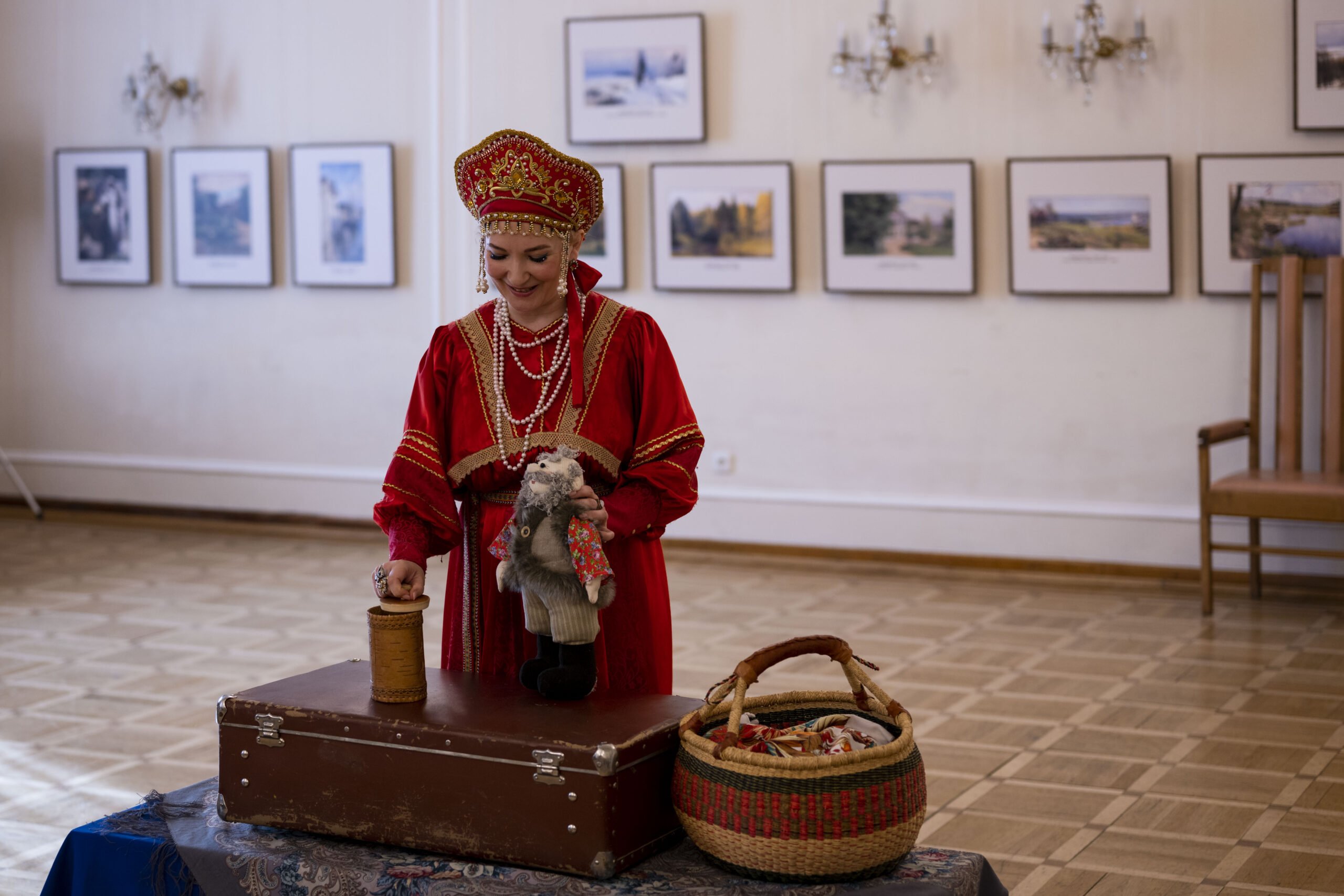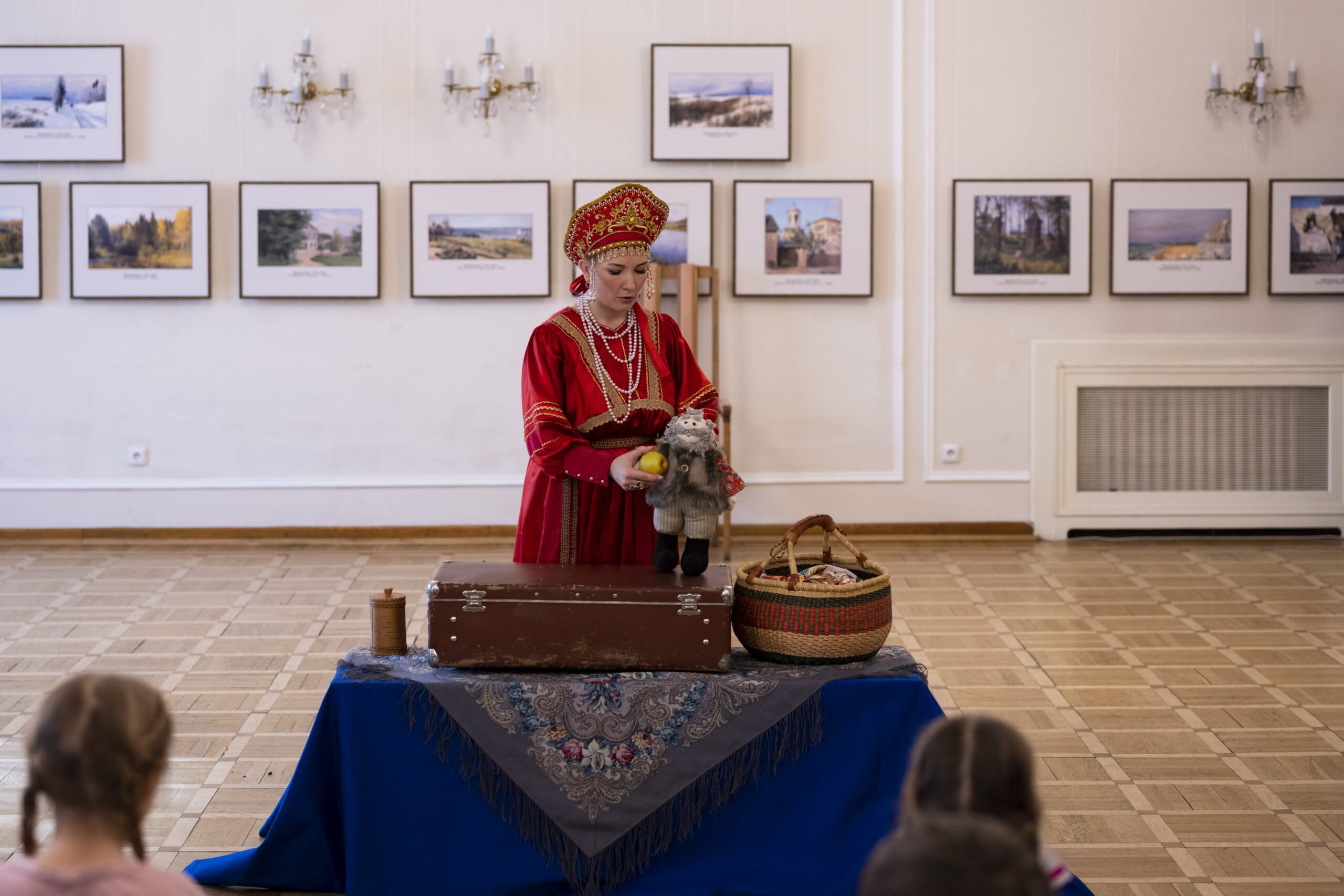 Главную роль исполнила актриса и поэт, член Союза писателей Санкт-Петербурга Екатерина Тихонова. Во время музыкального спектакля юные зрители водили с Василий Премудрой хороводы, узнали русские народные пословицы и поговорки с приветствиями, а также в интерактивной форме познакомились с главными героями и персонажами русских народных сказок.