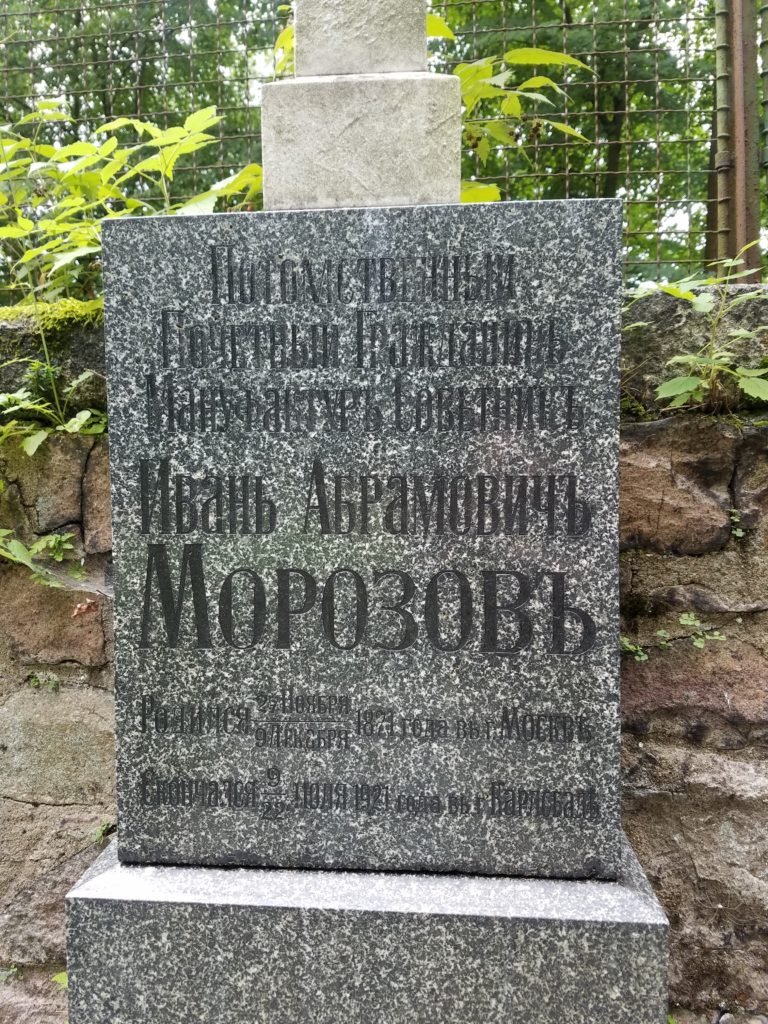 22 июня 1921 г. И. Морозов умер по дороге на воды в Карлсбад, куда направлялся на лечение. Долгое время место захоронения было неизвестно, считалось, что тело было вывезено во Францию. В 2012 г. могила была обнаружена на кладбище в районе Драговице в Карловых Варах, тогда же захоронение было отреставрировано при поддержке российских предпринимателей.