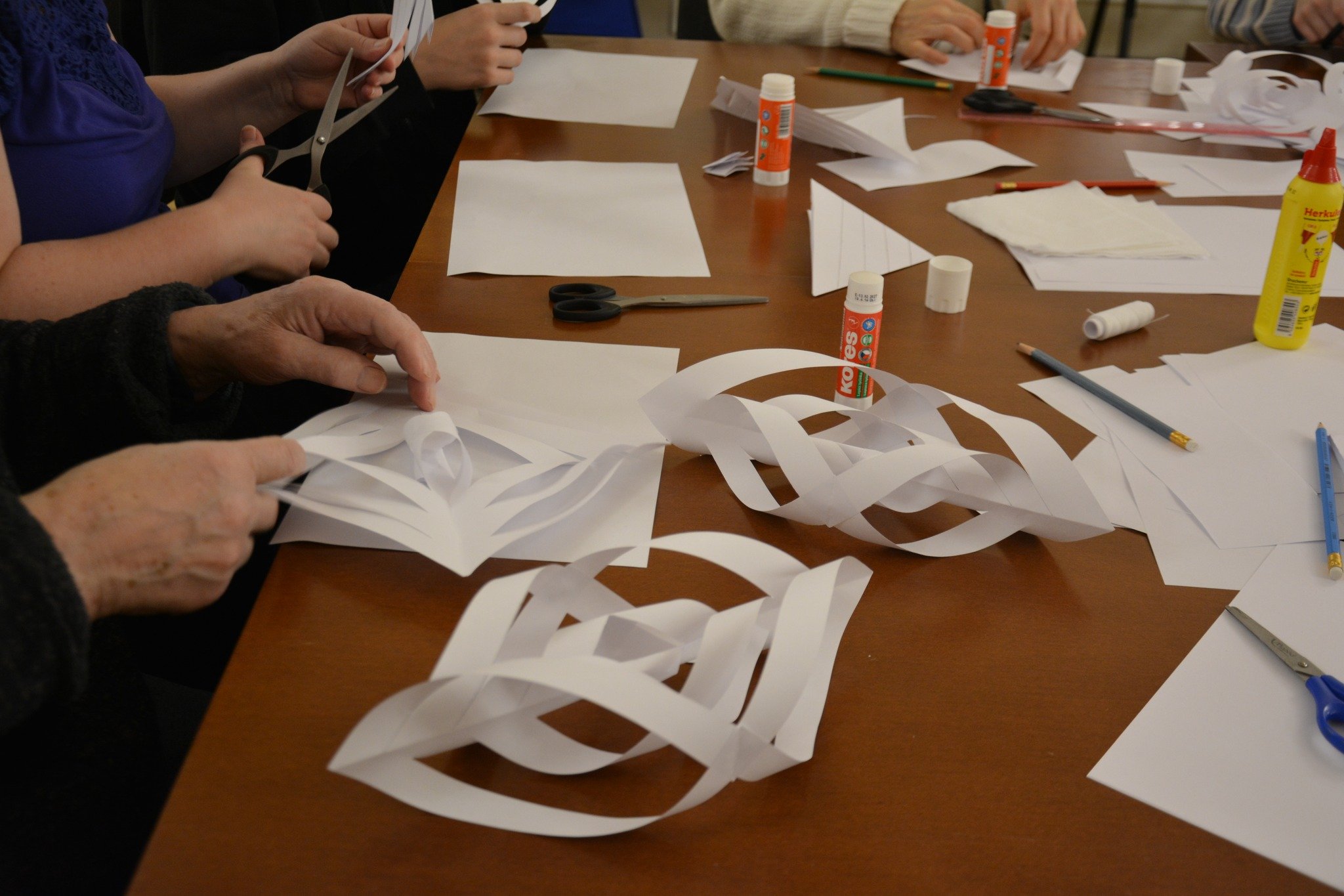 Během tvůrčí dílny její účastníci vyrobili několik zajímavých tematických výrobků, například legračního trpaslíka z nití a plsti, obrovskou papírovou sněhovou vločku, pohlednice a jiné.