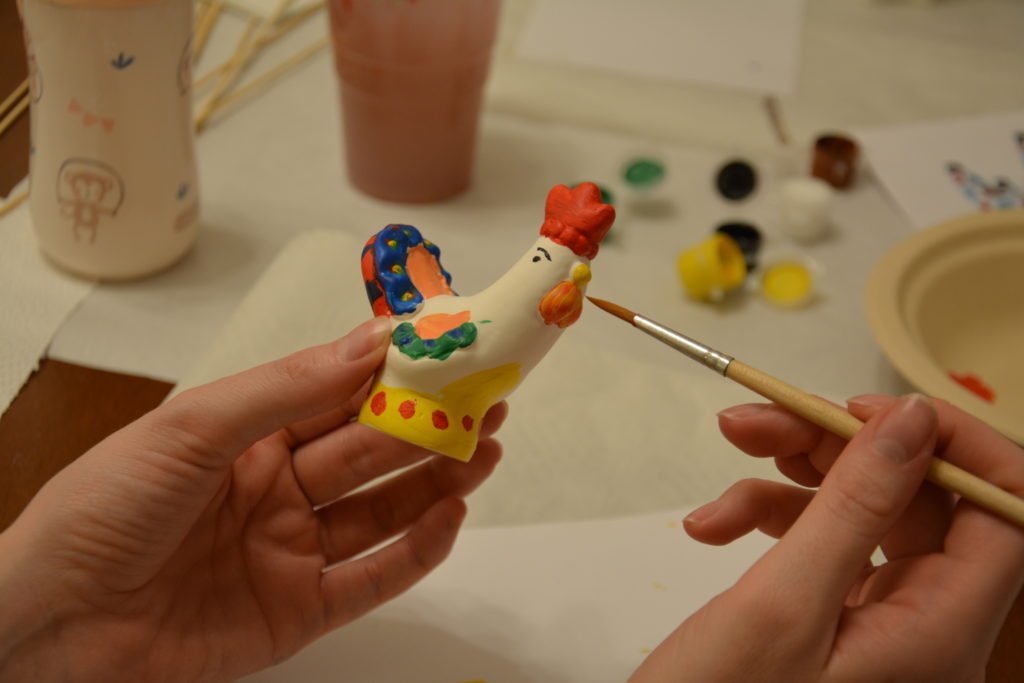 Кроме того, участники получили возможность собственными руками раскрасить традиционную дымковскую игрушку и забрать ее домой.