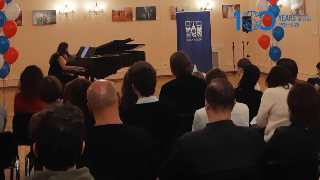В Русском доме в Праге состоялся концерт «Музыка без границ», приуроченный к 100-летию Народной дипломатии. В рамках прозвучали классические фортепианные произведения известных русских и зарубежных композиторов: «Сентиментальный вальс» Петра Ильича Чайковского, «Прелюдия, соч.23» Сергея Рахманинова и другие.