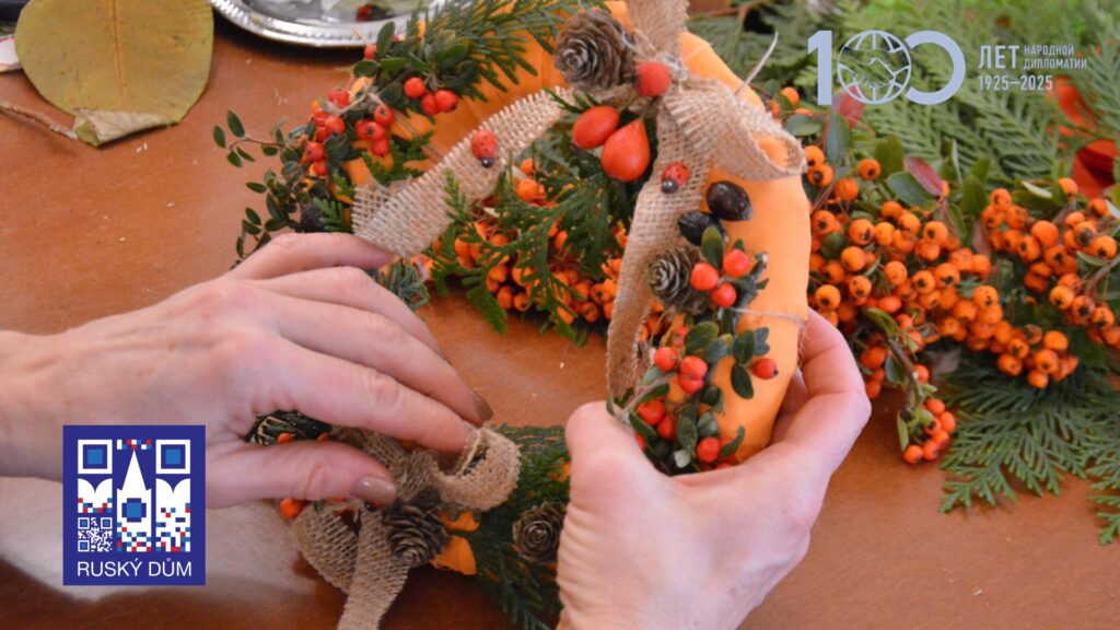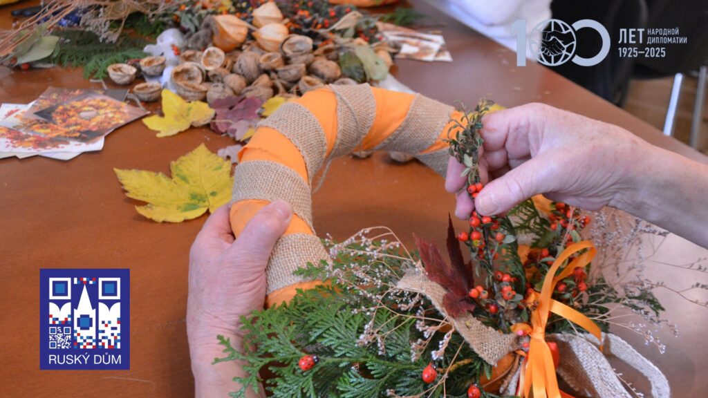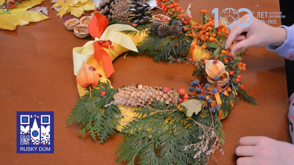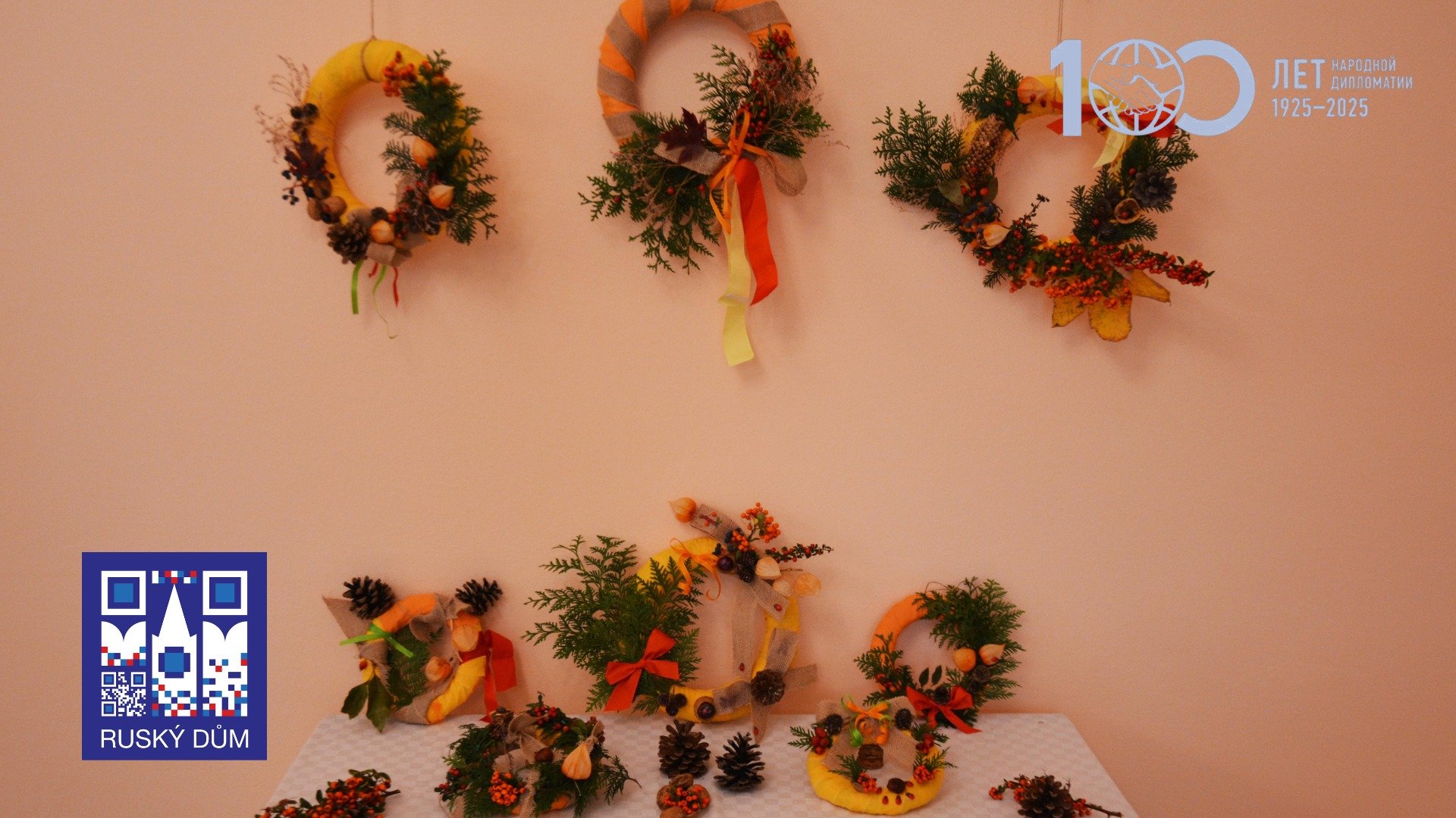 V předvečer Dne národní jednoty se konala tvůrčí dílna. Účastníci vyrobili věnec z přírodních materiálů: listí, šišek, ořechů, kaštanů atd.