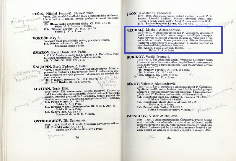В 1935 году оригинал акварели Михаила Врубеля «Ангел» чешские ценители искусства могли видеть в течение полутора месяцев в великолепном Клам-Галласовском дворце в Праге. Для Ретроспективной выставки русской живописи XVIII-XX века, которая стала крупнейшей в Чехословакии, картина была предоставлена частным коллекционером.